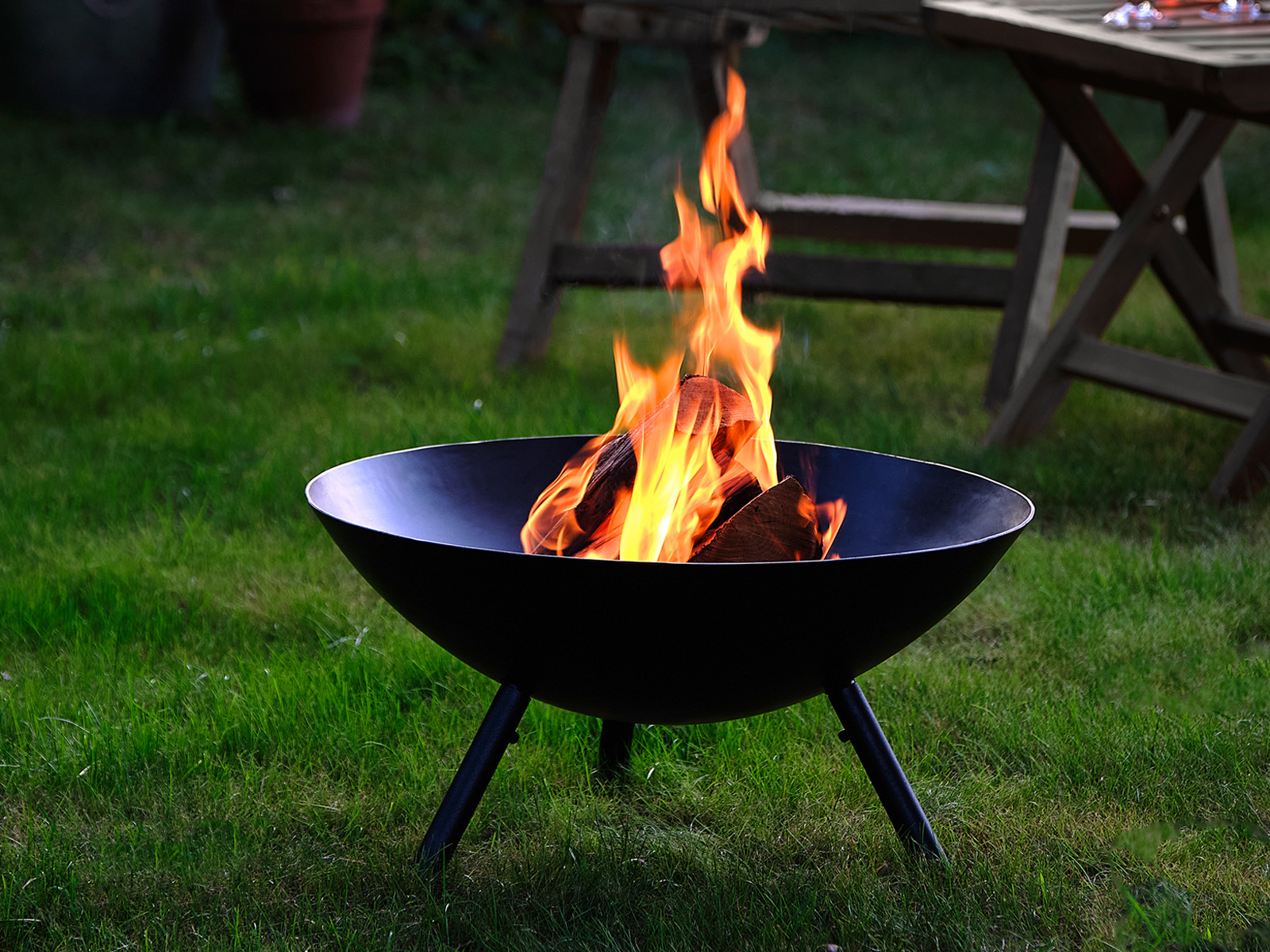 Eleganckie i oryginalne przenośne ogrodowe okrągłe palenisko, wykonane z kutej malowanej proszkowo stali o grubości 3 mm z trzema stabilnymi nóżkami.