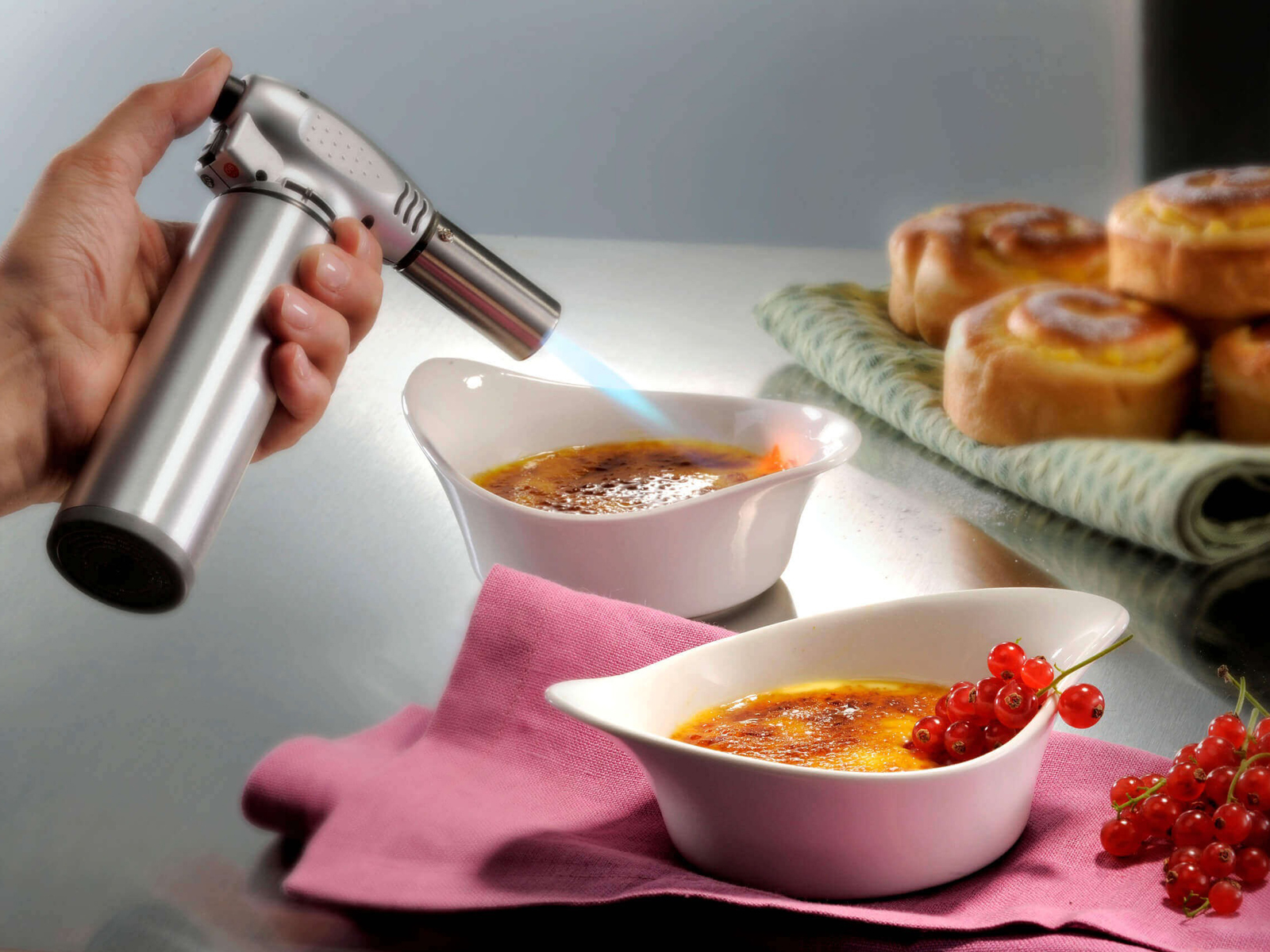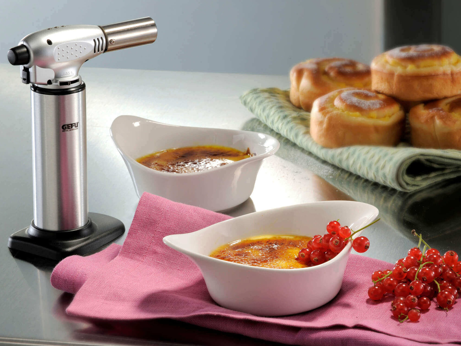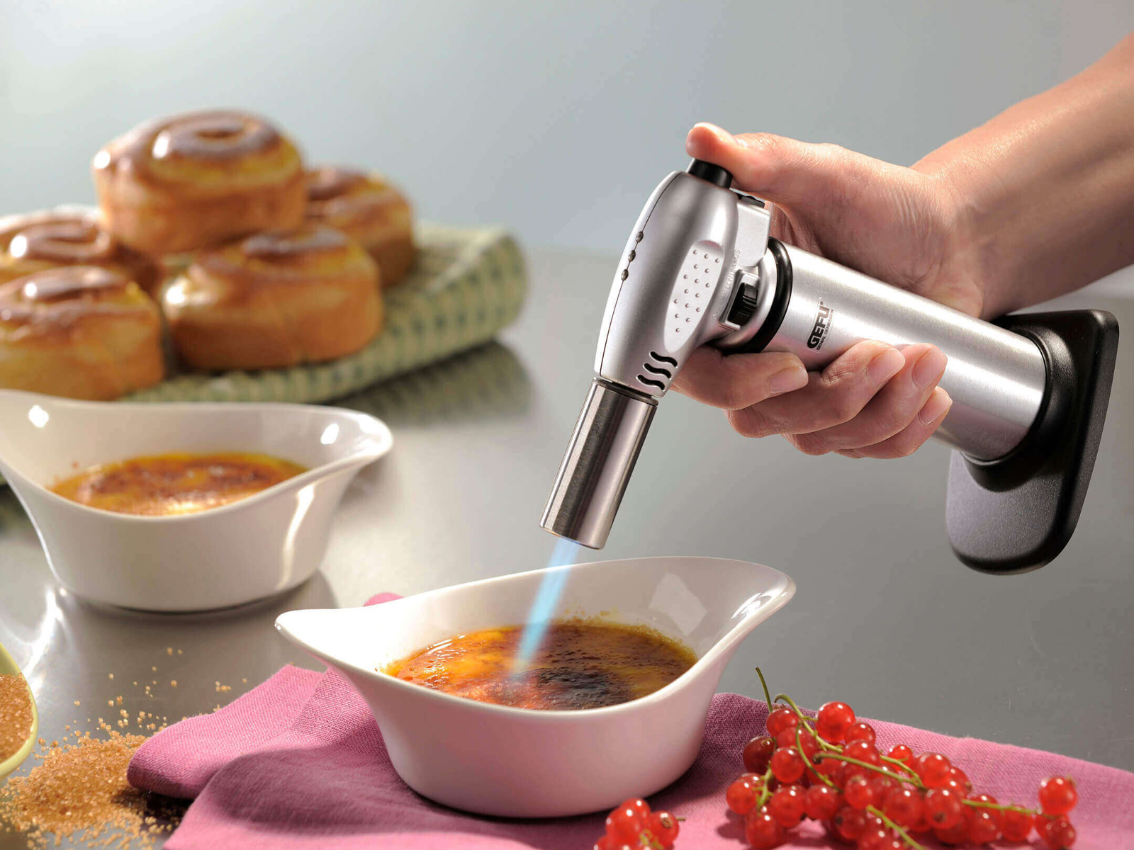 Palnik kuchenny GEFU Fuego to urządzenie wysokiej klasy, które błyskawicznie karmelizuje cukier, rumieni bezy, opieka sery i opala skórkę mięs. Płomień osiągający temperaturę do 1300°C można precyzyjnie regulować w zależności od zastosowania, co czyni palnik niezwykle uniwersalnym narzędziem. Czas pracy na jednym napełnieniu gazem butanowym wynosi co najmniej 60 minut, a zabezpieczenie przed dziećmi oraz stabilna podstawka gwarantują bezpieczne użytkowanie. Wysokojakościowa konstrukcja z metalu i tworzywa sztucznego sprawia, że nawet najbardziej efektowne sposoby prezentacji dań, takie jak podpalanie potraw alkoholem, staną się proste jak nigdy dotąd.