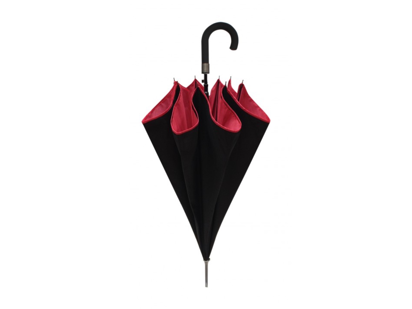 Klasyczny kształt znakomicie zabezpiecza przed wiatrem i deszczem, a przy tym wspaniale wygląda, będąc stylowym retro dodatkiem. Parasol posiada zakrzywioną rączkę, nad którą znajduje się przycisk automatycznego rozkładania