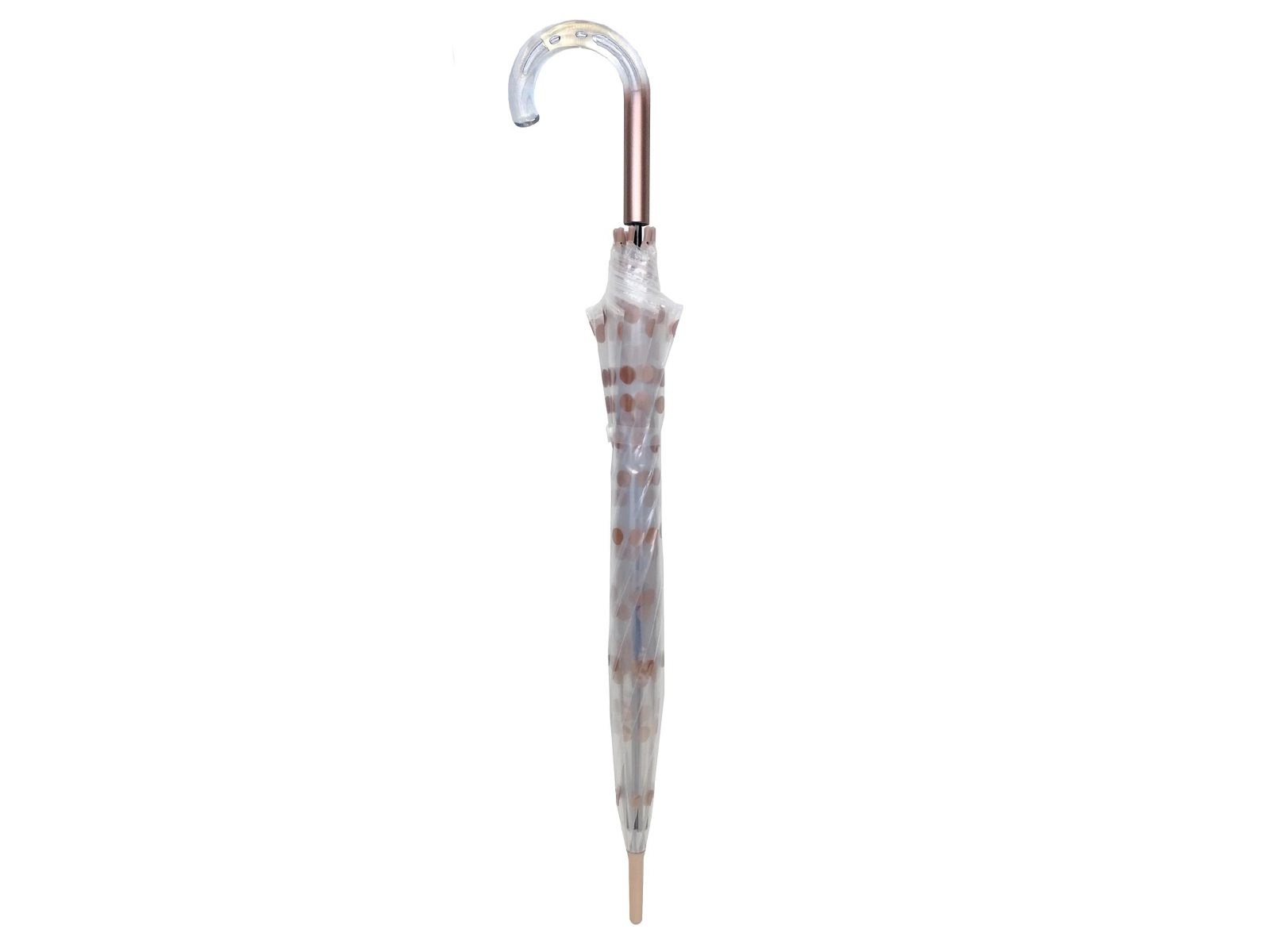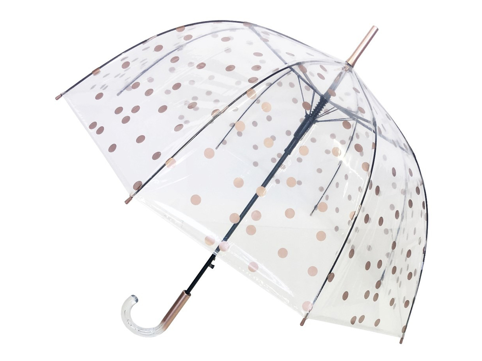 Klasyczny kształt kopuły znakomicie zabezpiecza plecy przed wiatrem i deszczem, a przy tym wspaniale wygląda, będąc stylowym retro dodatkiem. Mimo swojej głębokości, parasol nie ogranicza widoczności, dzięki przezroczystej folii. Parasol posiada zakrzywioną rączkę, nad którą znajduje się przycisk automatycznego rozkładania
