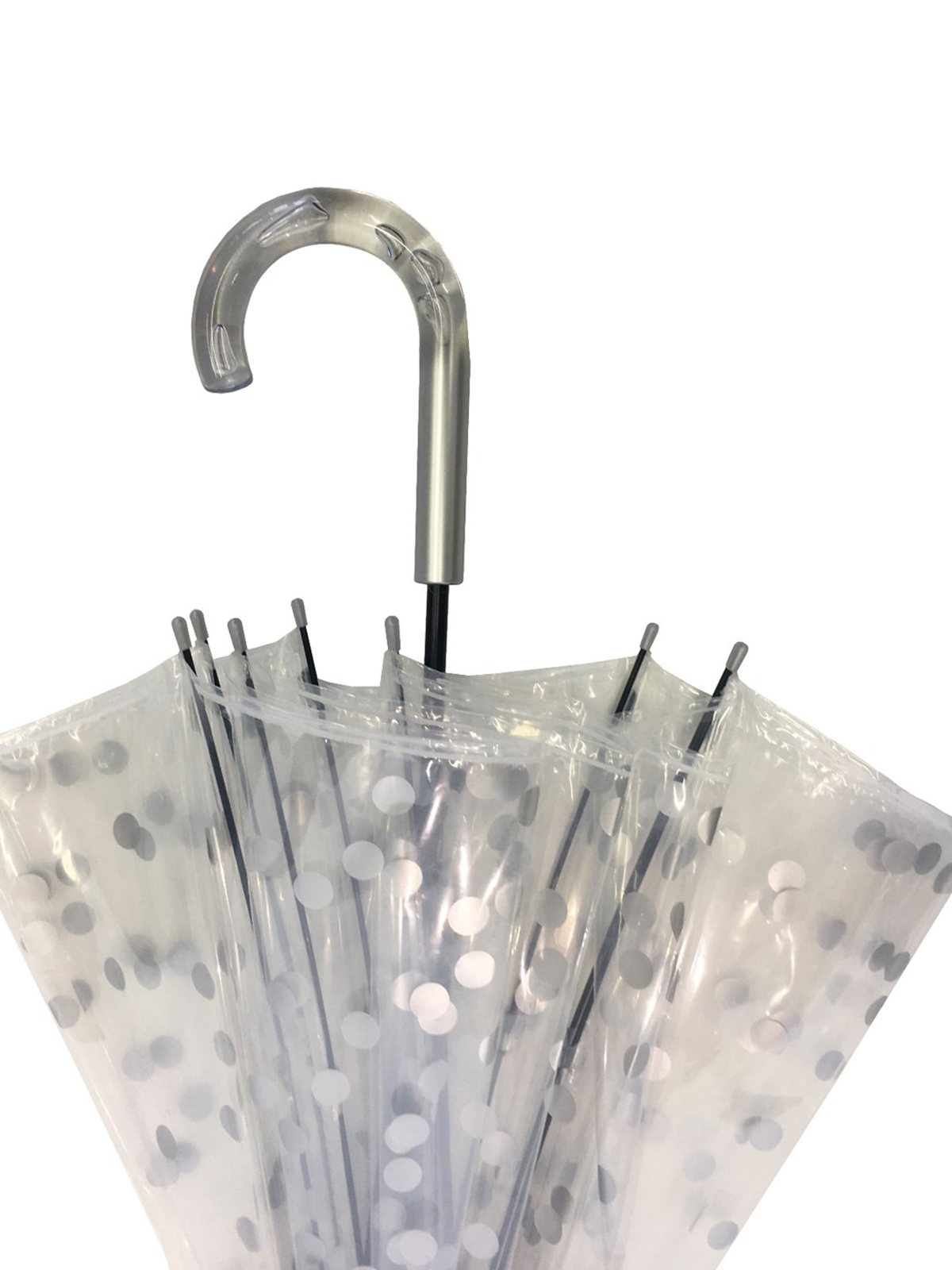 Klasyczny kształt kopuły znakomicie zabezpiecza plecy przed wiatrem i deszczem, a przy tym wspaniale wygląda, będąc stylowym retro dodatkiem. Mimo swojej głębokości, parasol nie ogranicza widoczności, dzięki przezroczystej folii. Parasol posiada zakrzywioną rączkę, nad którą znajduje się przycisk automatycznego rozkładania
