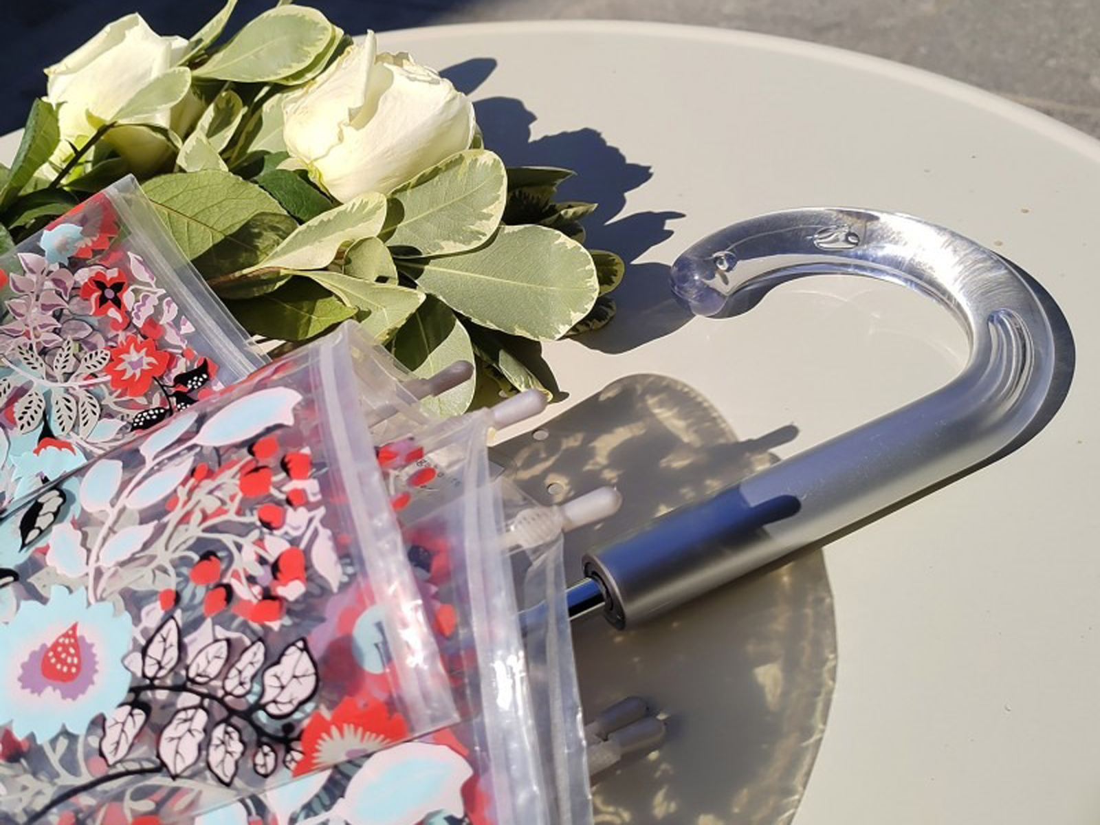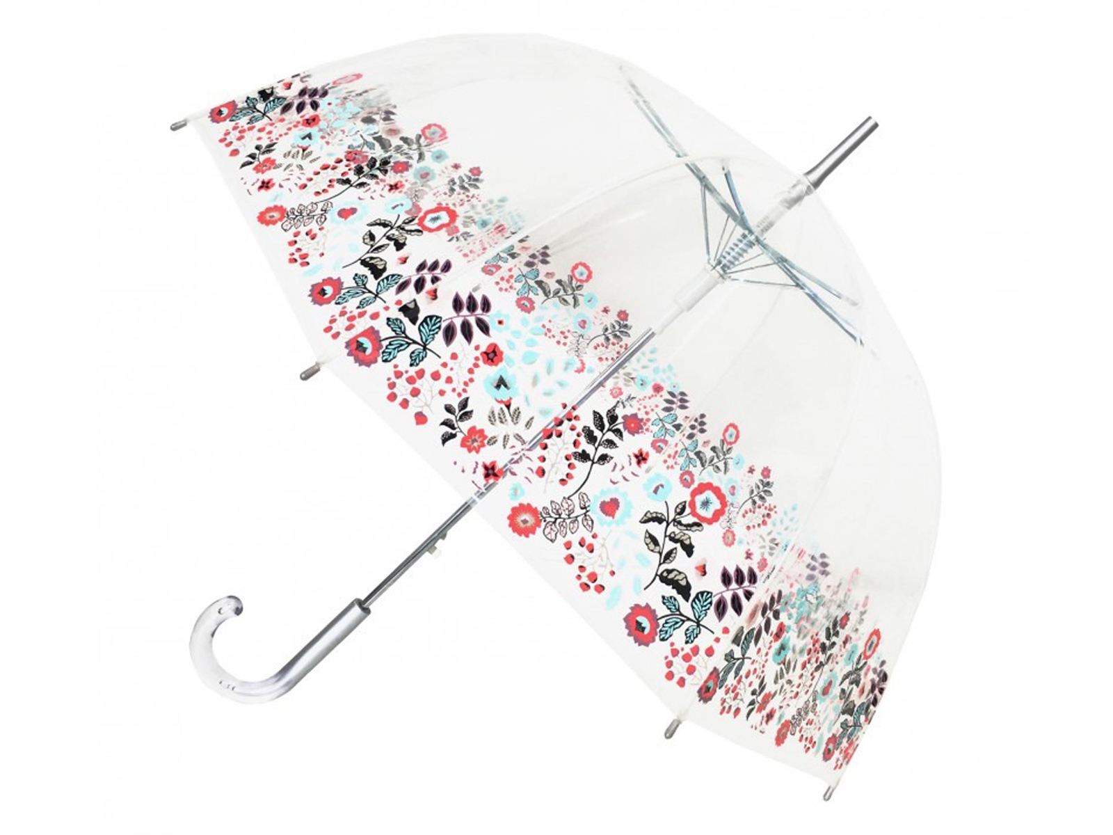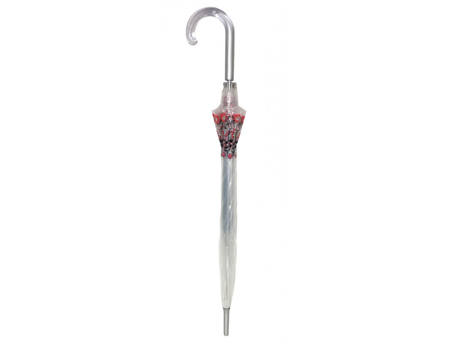 Klasyczny kształt kopuły znakomicie zabezpiecza plecy przed wiatrem i deszczem, a przy tym wspaniale wygląda, będąc stylowym retro dodatkiem. Mimo swojej głębokości, parasol nie ogranicza widoczności, dzięki przezroczystej folii. Parasol posiada zakrzywioną rączkę, nad którą znajduje się przycisk automatycznego rozkładania