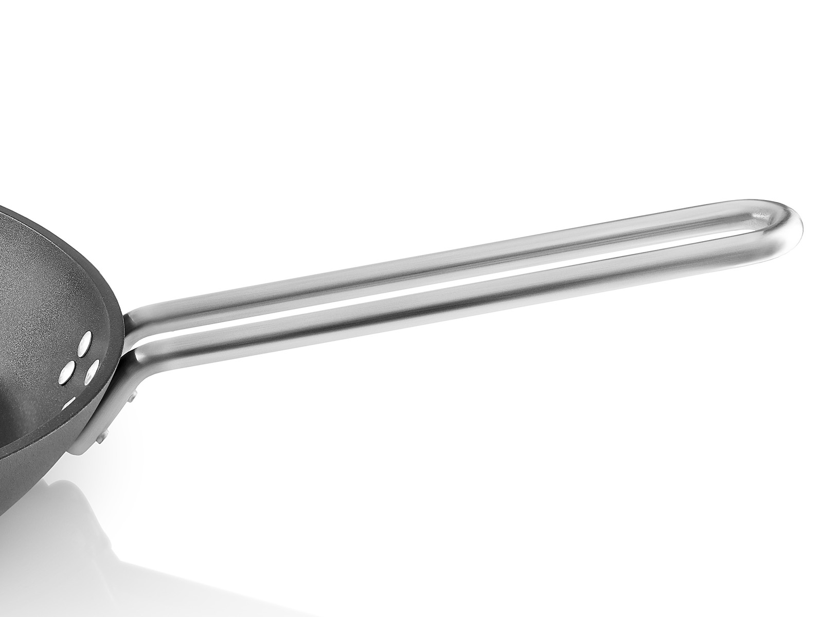 Uchwyt patelni wykonany z 10 mm drutu ze stali nierdzewnej, nie nagrzewa się podczas smażenia.