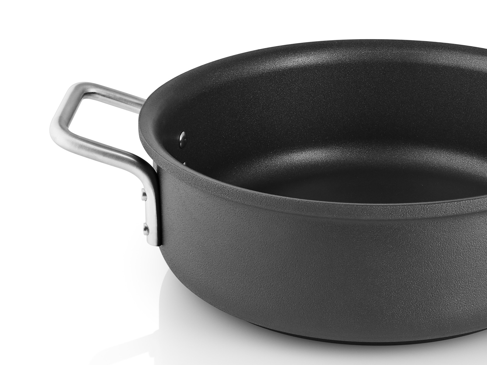 Patelnia sauté jest niezwykle uniwersalna nadaje się do smażenia, duszenia, a nawet gotowania w piekarniku. Wysokie boki patelni zapobiegają rozlewaniu się jej zawartości przy potrząsaniu na boki, nawet przy dużej ilości płynu.