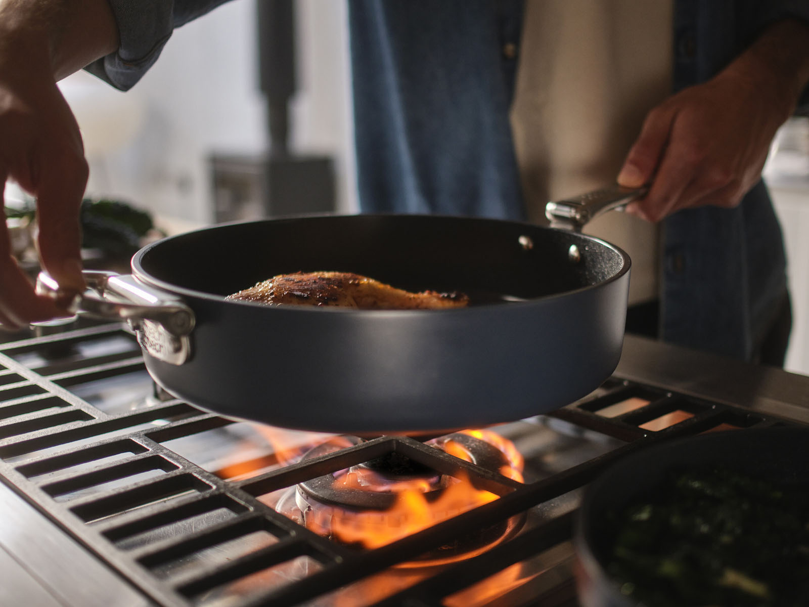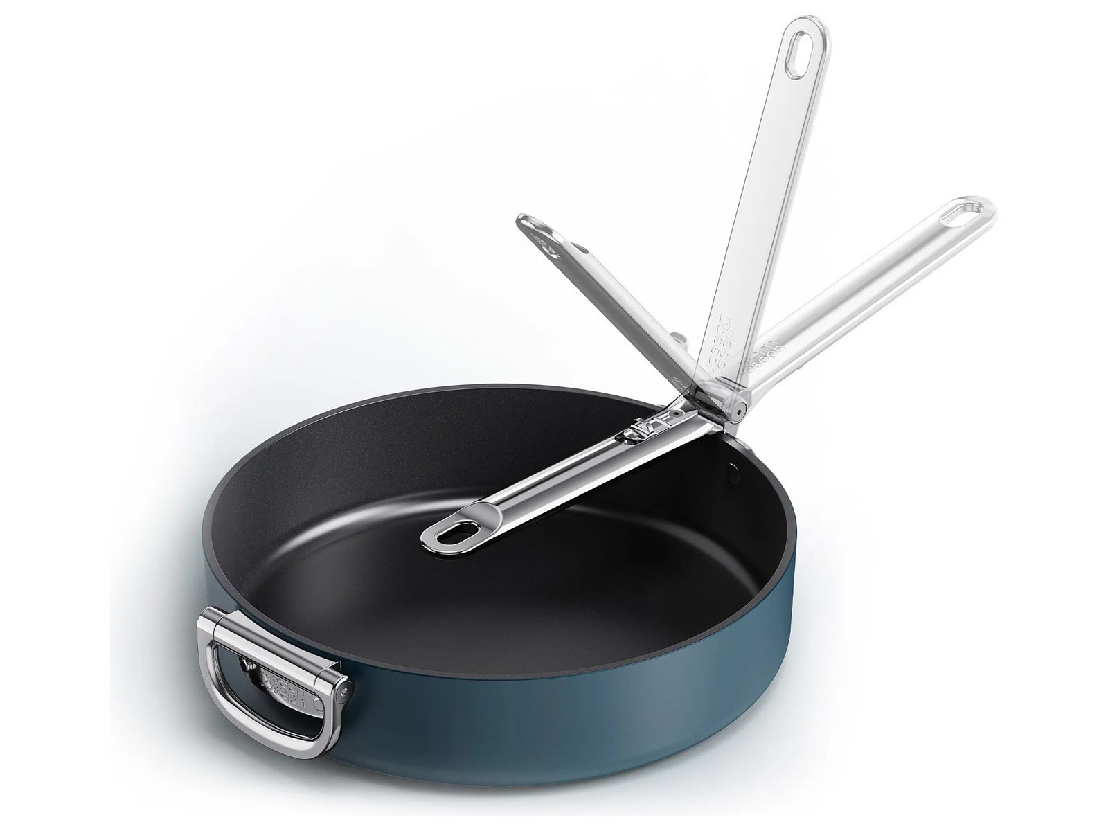 Ekskluzywna patelnia ze składanym uchwytem i pokrywką