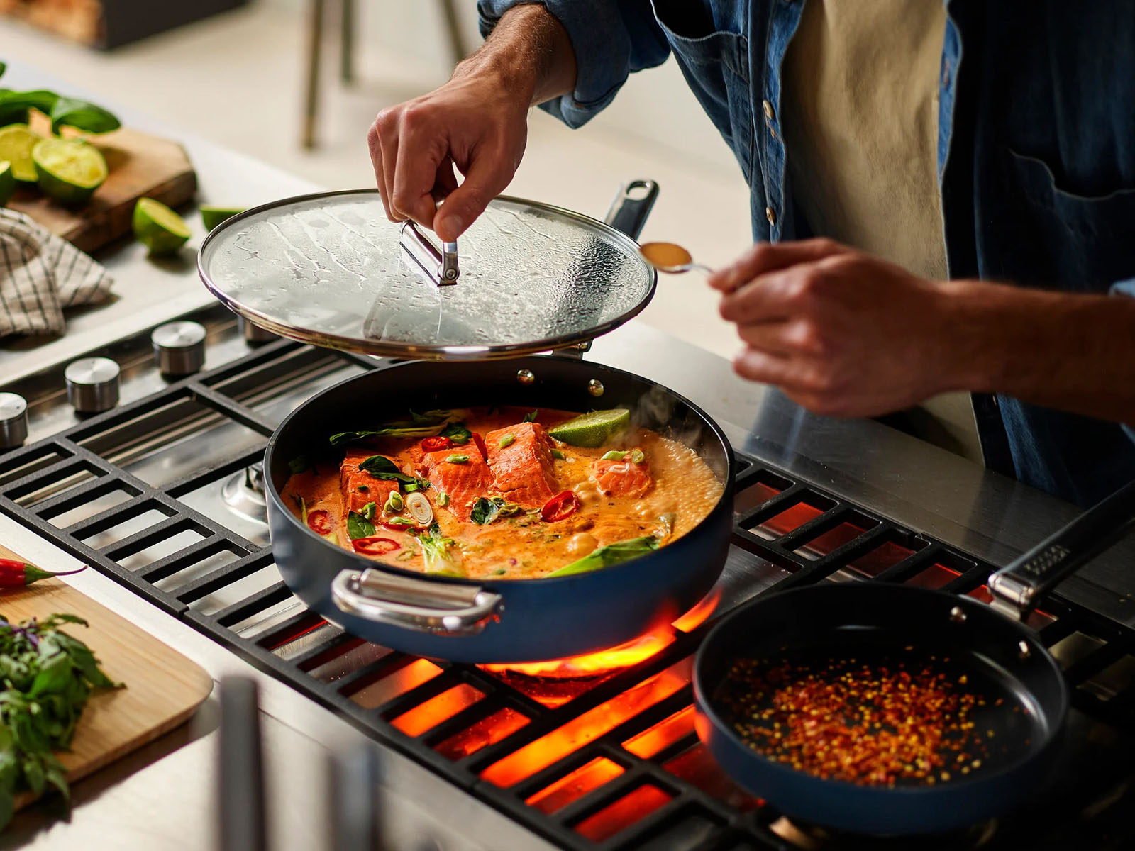 Ekskluzywna patelnia ze składanym uchwytem i pokrywką