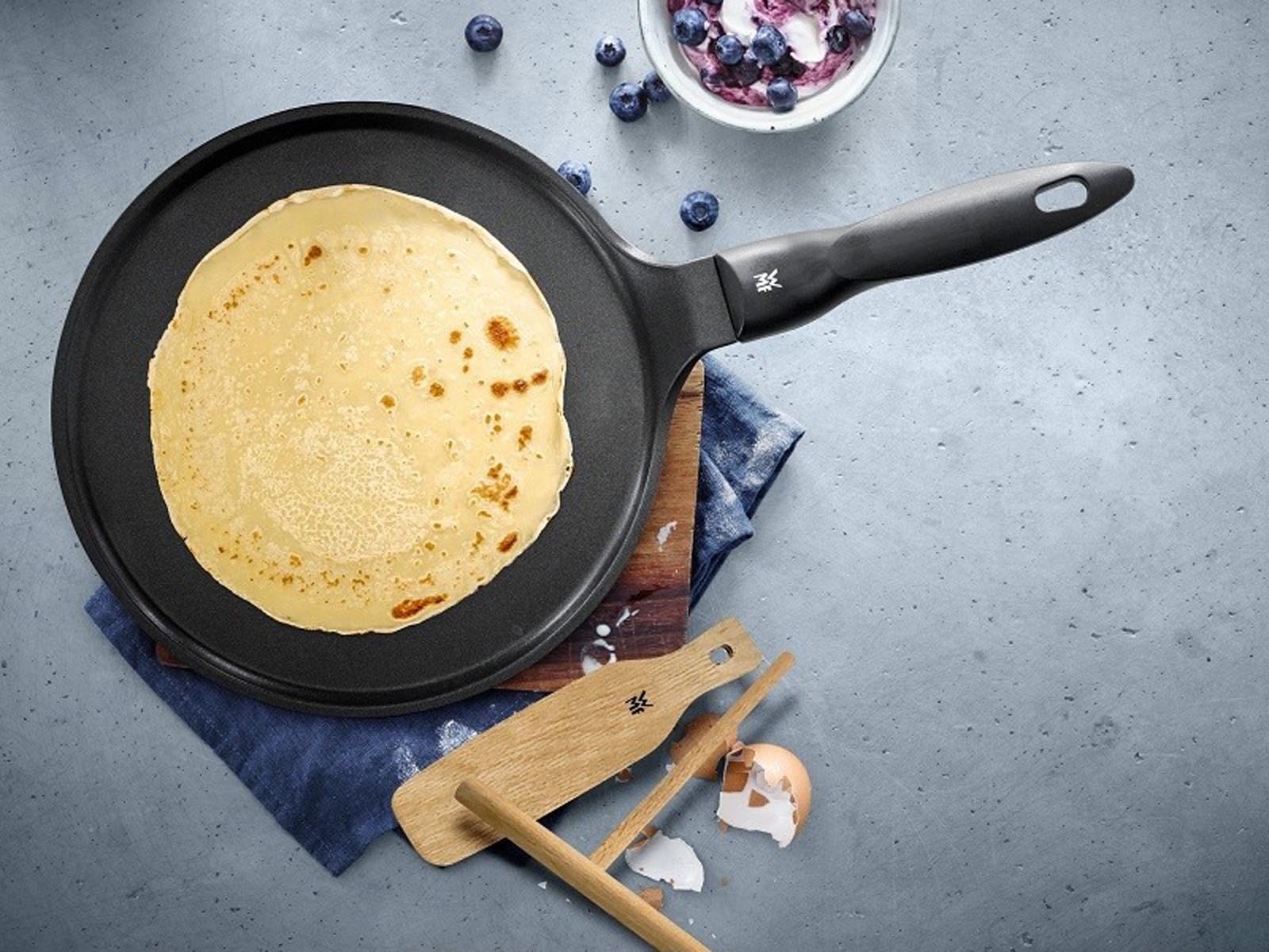 Elegancka kuchenna płaska patelnia do smażenia cienkich i puszystych naleśników.