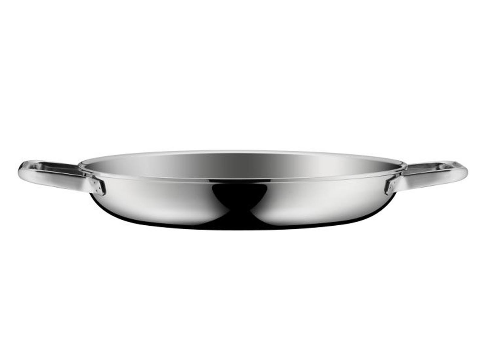 Elegancka patelnia kuchenna z dwoma krótkimi uchwytami idealna do obsmażanie i smażenie warzyw, mięsa, ryb bez użycia dużej ilości tłuszczu oraz ich serwowania.