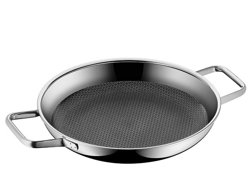 Warstwa wewnętrzna patelni pokryta jest specjalną trwałą odporną na zarysowania 3-warstwową powłoką nieprzywierającą PermaDur, która dodatkowo zabezpieczona jest specjalną lekko wypukłą siatką o strukturze plastra miodu wykonaną z wytrzymałego Cromarganu®.