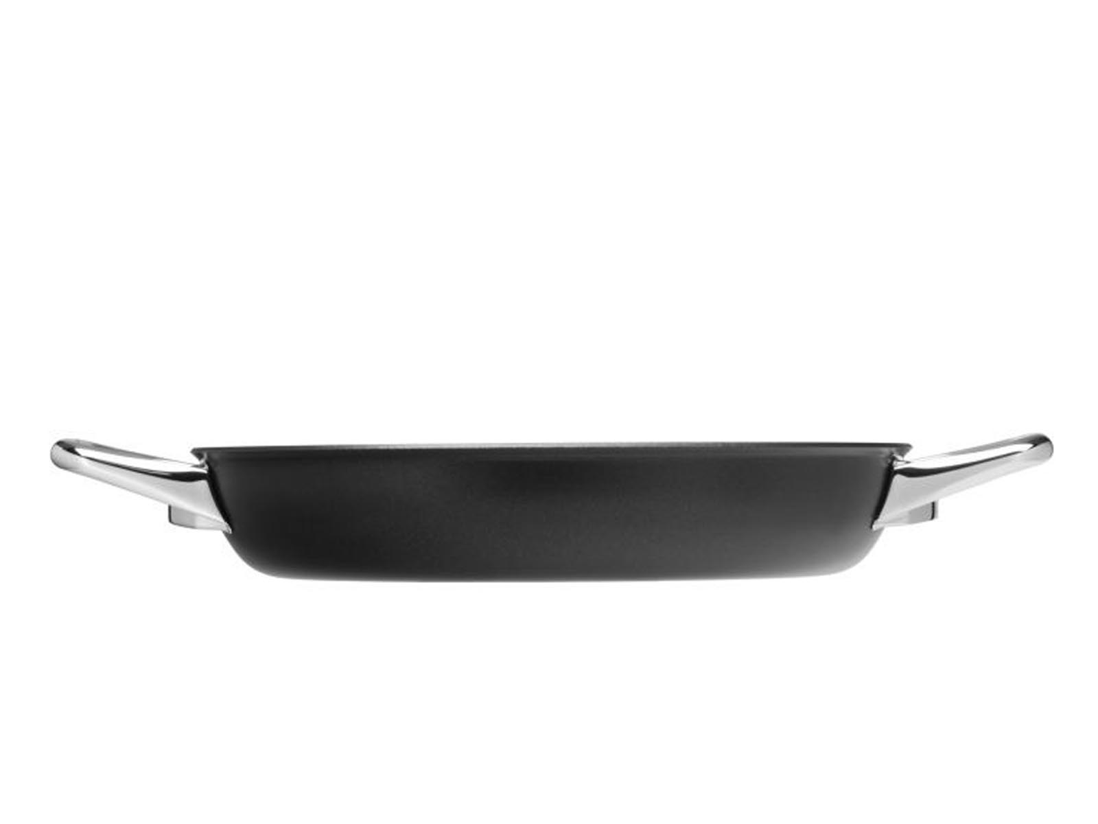 Elegancka płaska patelnia do smażenia w wysokich temperaturach z technologią Rapid Heat Control idealna do smażenia w wysokich temperaturach i serwowania mięsa w szczególności steków.