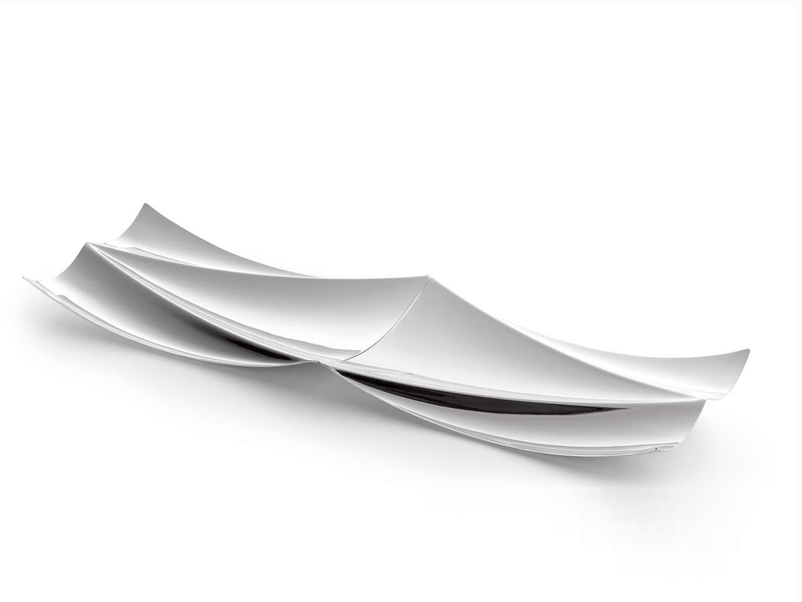 Patery w kształcie prostokątnym o lekko wygiętych do góry bokach, wykonane z wysokiej jakości polerowanej stali nierdzewnej.