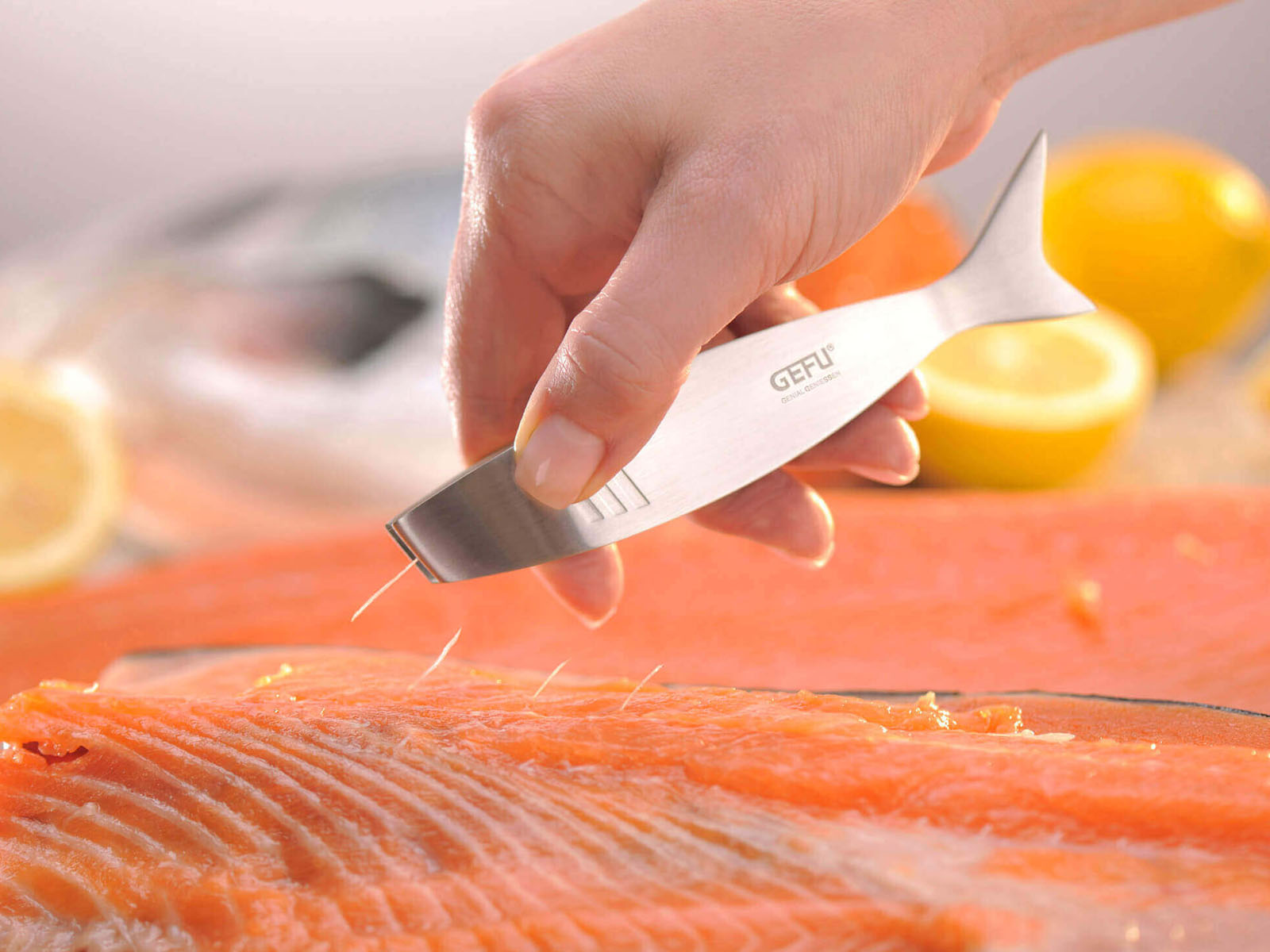GEFU Tola to bardzo praktyczna i precyzyjna pęseta / szczypce do ości. Pęseta to niezbędne narzędzie dla każdego miłośnika ryb, którego celem jest precyzyjne usunięci ości z tuszy ryby. Pęseta nie tylko doskonale radzi sobie z usuwaniem ości z ryby, ale także jest idealna do usuwania piór z kurczaka czy innych drobnych elementów. Jej ergonomiczny kształt zapewnia wygodne i łatwe użycie, co pozwala na dokładne usunięcie wszystkich niepotrzebnych elementów. Pęseta wykonana jest wysokiej jakości stali nierdzewnej.