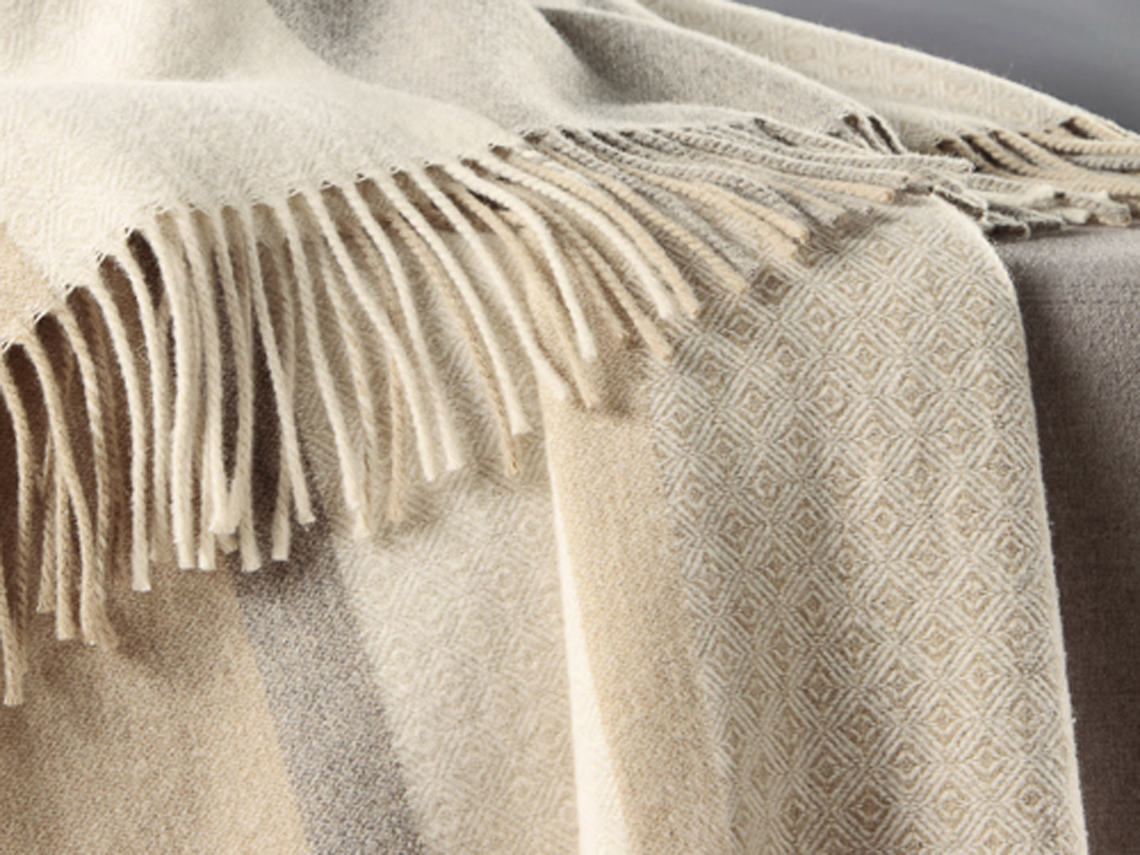 Biederlack Wool Cashmere to doskonałej jakości wełniany pled z dodatkiem kaszmiru przeznaczony do okrycia się przez cały rok lub do efektownej dekoracji sypialni lub salonu. Pled zapewnia bardzo wysoki komfort termiczny oraz jest jednocześnie bardzo miły i delikatny w dotyku.