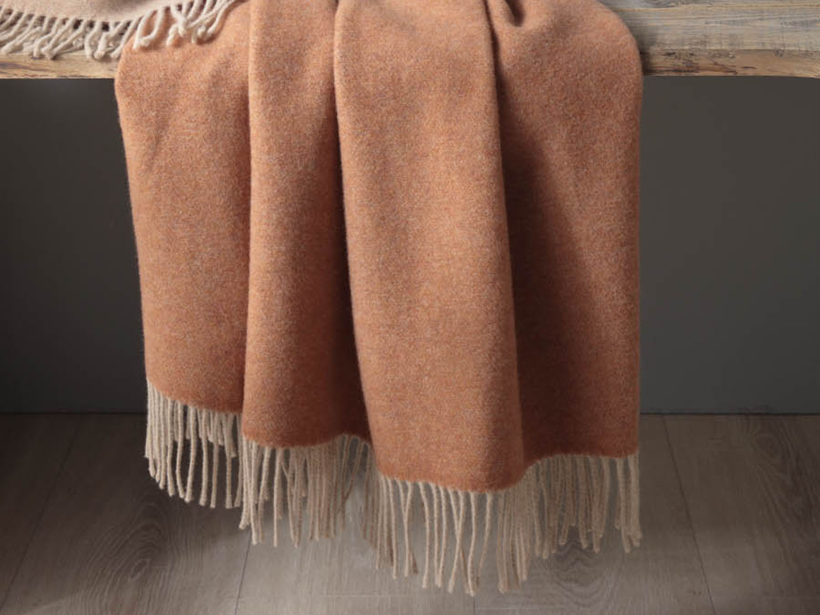 Doskonałej jakości wełniany pled z 20% dodatkiem kaszmiru przeznaczony do okrycia się przez cały rok lub do efektownej dekoracji sypialni lub salonu. Pled zapewnia bardzo wysoki komfort termiczny oraz jest jednocześnie bardzo miły i delikatny w dotyku.