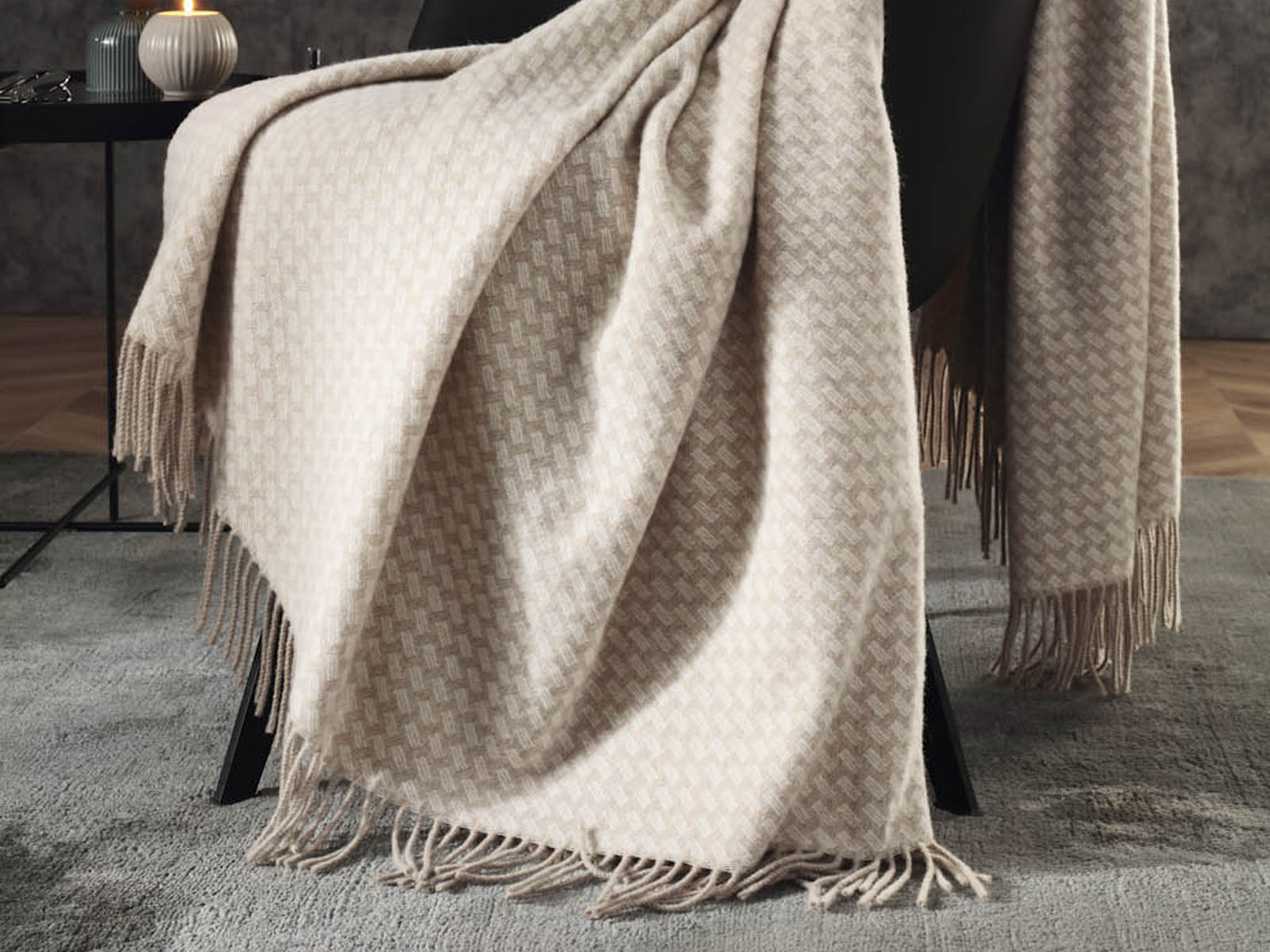 Biederlack Wool Cashmere to doskonałej jakości kaszmirowy (70%) pled z dodatkiem czystej wełny (30%) przeznaczony do okrycia się przez cały rok lub do efektownej dekoracji sypialni lub salonu. Pled zapewnia bardzo wysoki komfort termiczny oraz jest jednocześnie bardzo miły i delikatny w dotyku.