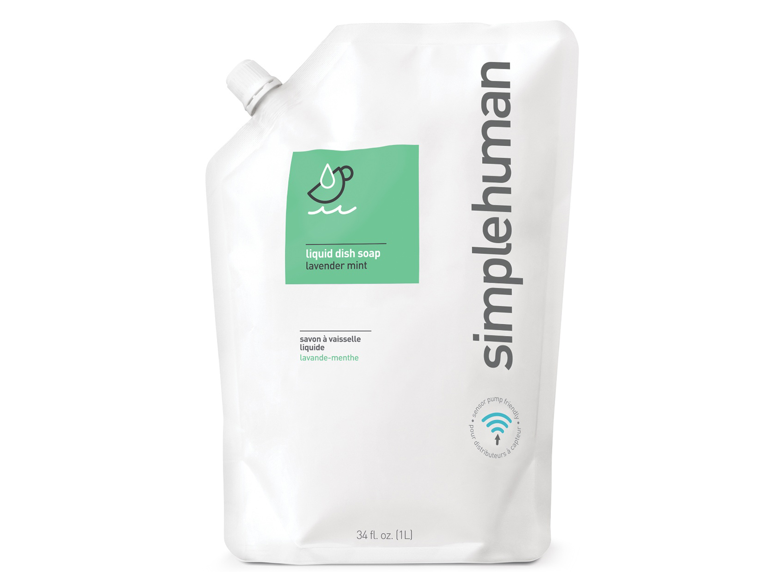 Opakowanie płynu z wygodnym, odkręcanym dzióbkiem umożliwia sprawne i czyste uzupełnianie dozownika.