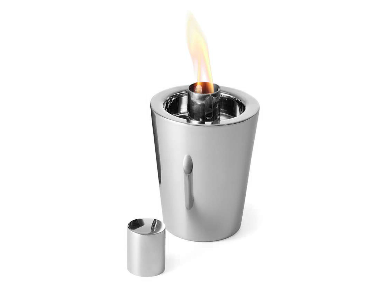 Pochodnia wykonana z polerowanej niklowanej stali nierdzewnej.