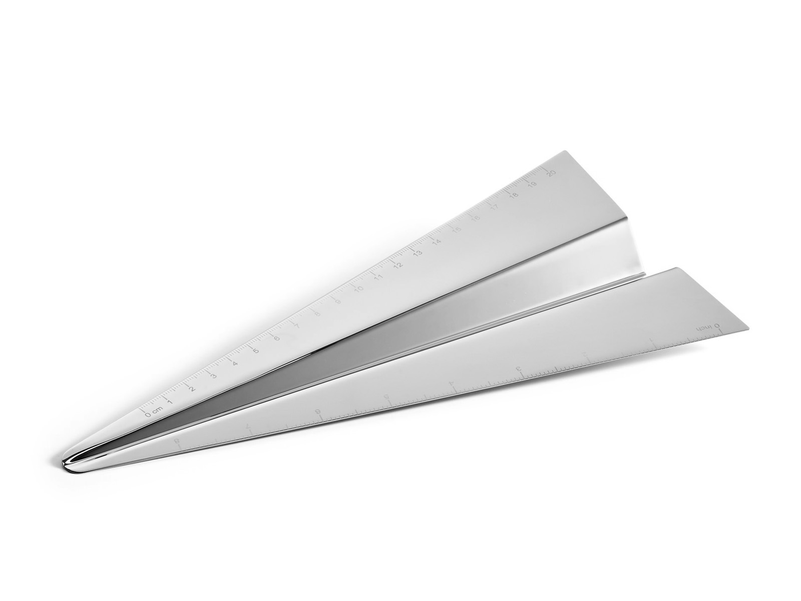 Na skrzydłach samolotu znajdują się 2 linijki do pomiaru w dwóch jednostkach - centymetrach (cm) oraz calach (in), zagłębienie po środku podstawki przeznaczone na podręczne przechowywanie przyborów do pisania lub innych drobnych przedmiotów biurowych.