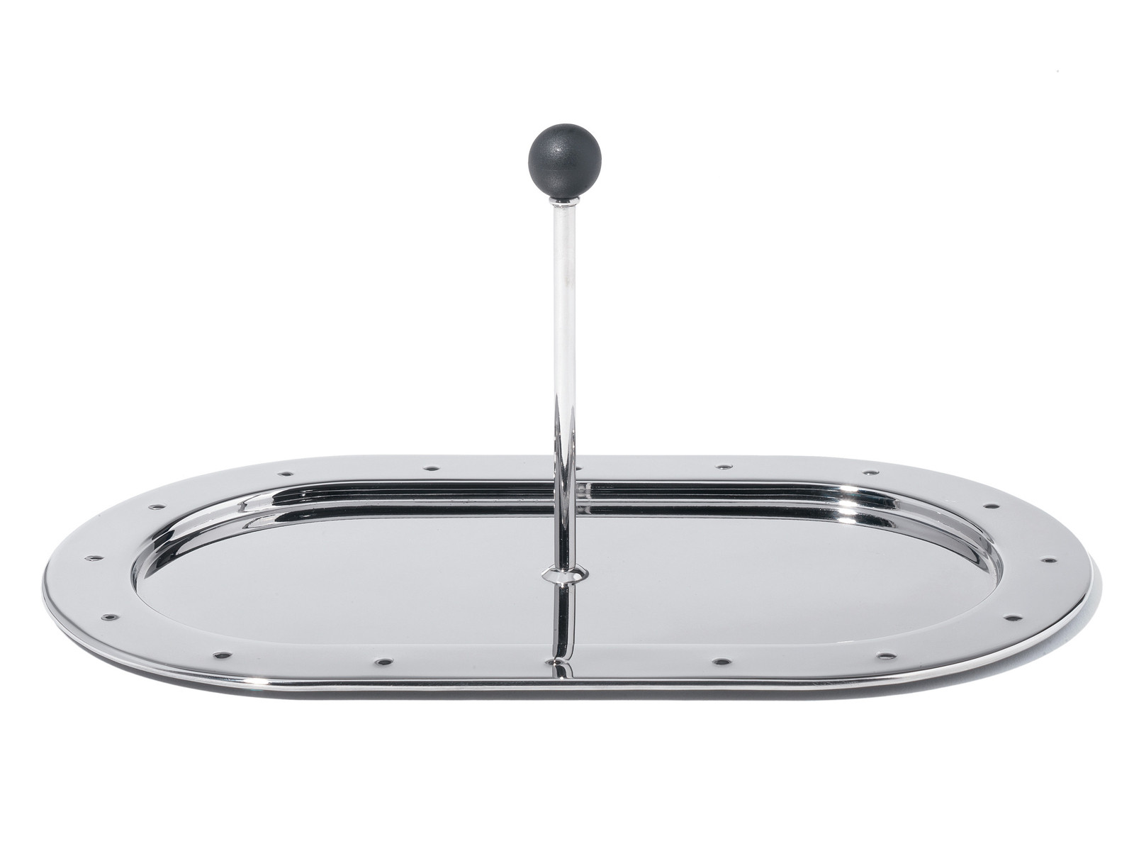 Podstawka MG34 to idealne uzupełnienie stożkowych cukiernic z serii 9097 i mleczników 9096. Owalna tacka ma stalową powierzchnię polerowaną do efektu lustra oraz centralnie umieszczony uchwyt z kulką, charakterystyczną dla dedykowanych naczyń.