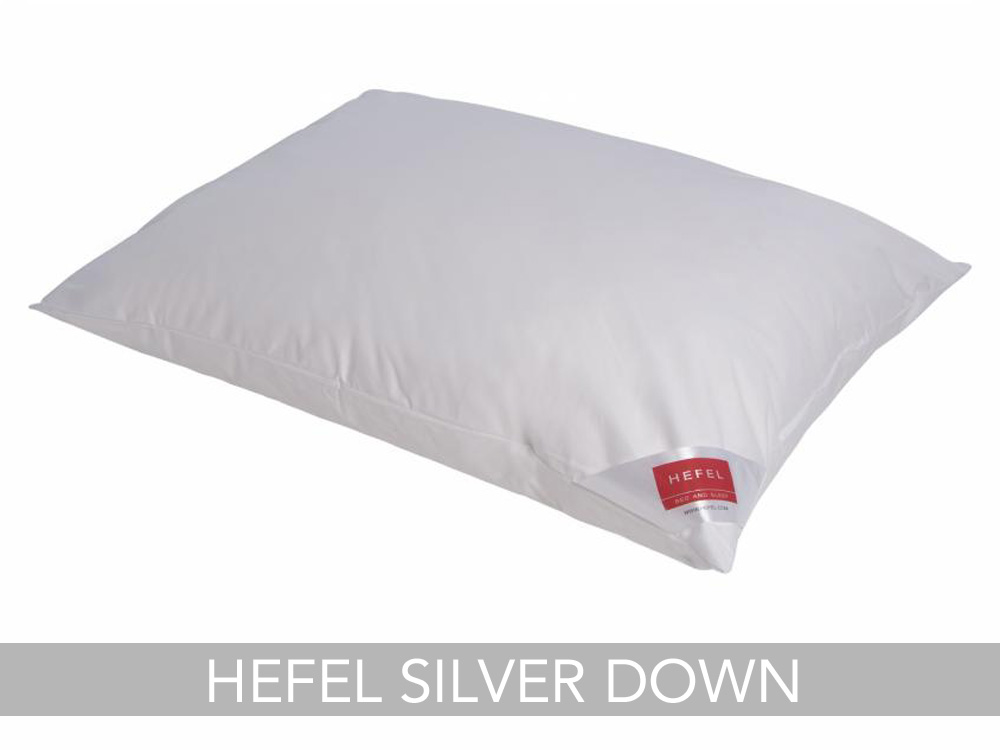 Hefel Silver Down to jedna z podstawowych a jednocześnie flagowych kolekcji bardzo delikatnych i miłych w dotyku kołder i poduszek puchowych wykonanych z najlepszego wyselekcjonowanego świeżego białego puchu gęsiego z puchoszczelnym pokryciem batystowym z bawełny egipskiej. Wypełnienie poduszki stanowi w 70% pierze gęsie oraz w 30% puch gęsi. Taki skład daje umiarkowaną miękkość oraz umiarkowaną wyporność.