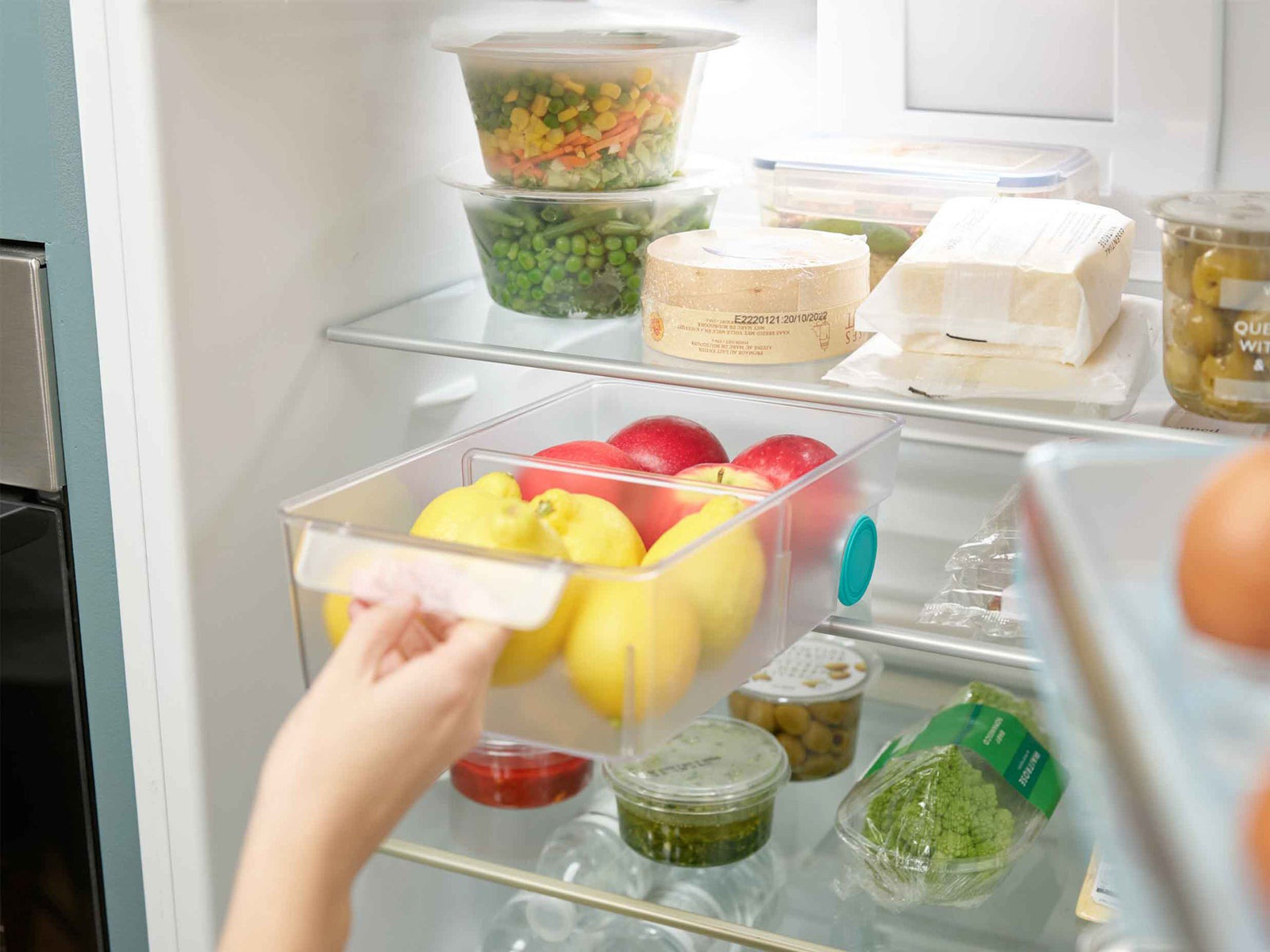 Elegancki i praktyczny mobilny pojemnik do lodówki przeznaczony do przechowywania różnego rodzaju produktów spożywczych.