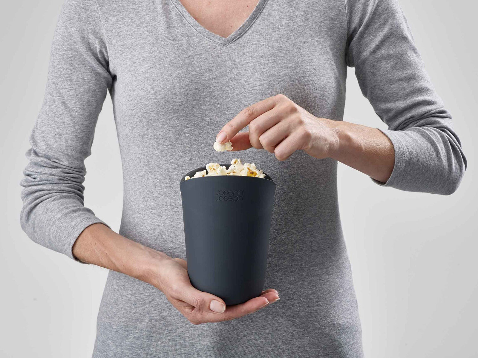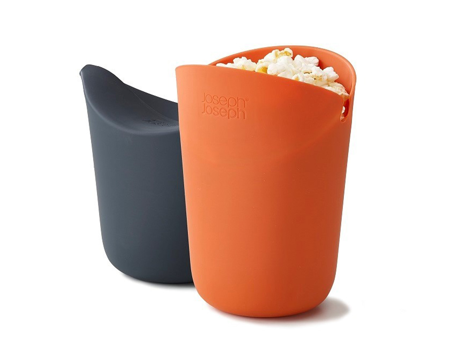 Pojemniki wykonane z żaroodpornego silikonu o konstrukcji umożliwiającej zagięcie ich brzegów w taki sposób, aby tworzyły pokrywkę. Zamknięcie pojemnika zagiętymi bokami zapobiega rozpryskiwaniu się kukurydzy i gotowego popcornu podczas podgrzewania w mikrofalówce.