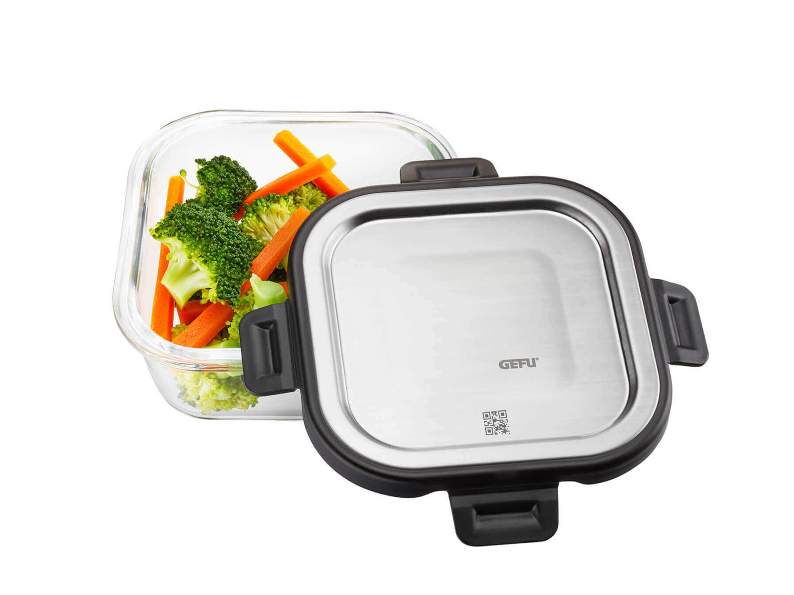 Pojemnik GEFU Milo to nowoczesne naczynie ze szkła borokrzemowego, które doskonale sprawdzi się do przechowywania żywności w każdych warunkach temperaturowych. Pokrywka ze stali nierdzewnej wyposażona jest w silikonowe uszczelki i zamknięcie na zatrzask, które gwarantują trwałość, szczelność i zachowanie świeżości potraw. Wyjątkowa odporność na temperatury od -20°C do 300°C umożliwia stosowanie pojemnika w zamrażarce, piekarniku i kuchence mikrofalowej bez pokrywki. Co więcej, pojemnik wyposażony jest w kod QR – dzięki temu można zarządzać zapasami przez bezpłatną aplikację mobilną, która pomoże kontrolować terminy przydatności i stan zapełnienia.