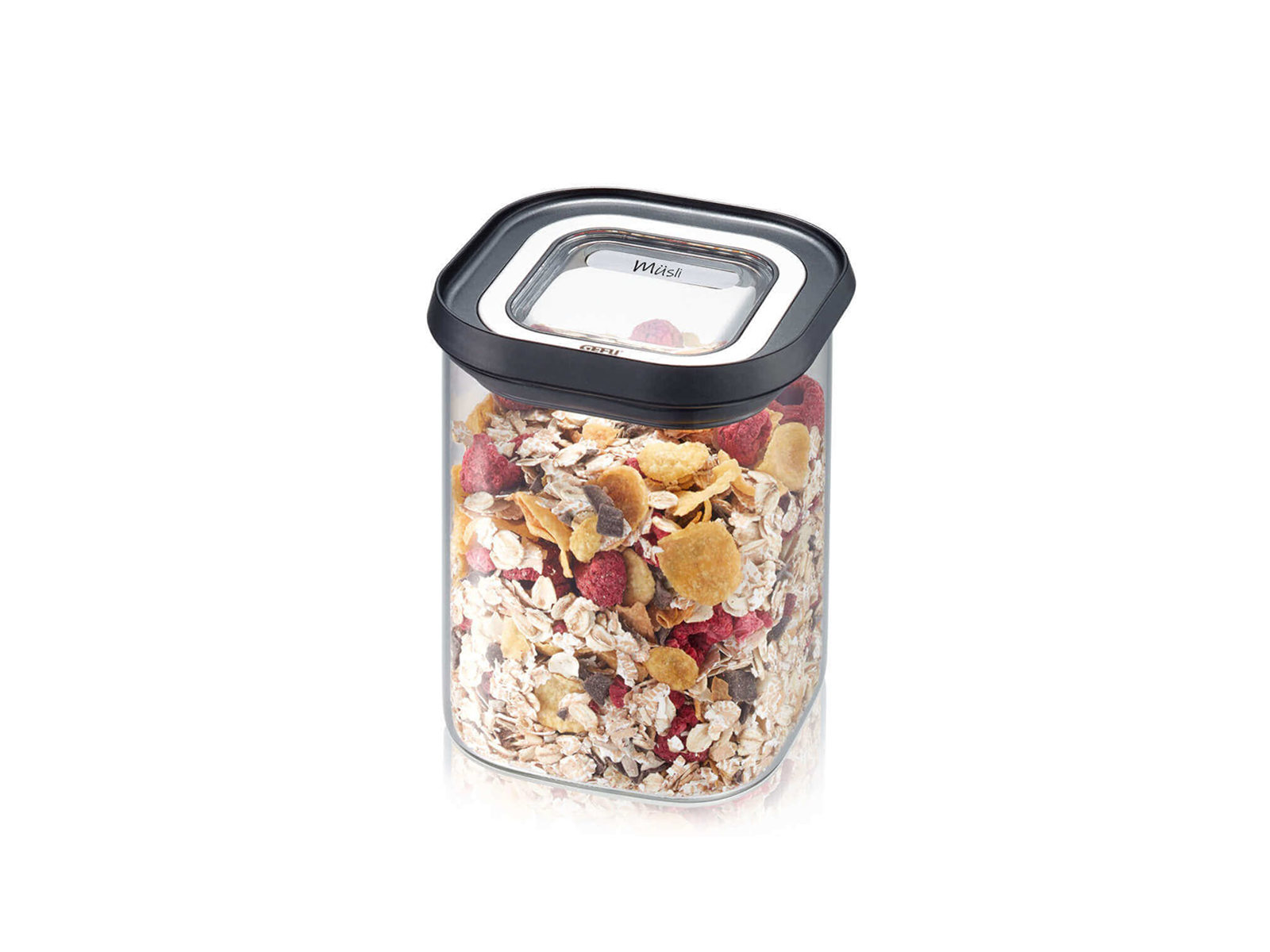 Pojemnik GEFU Pantry to nie tylko praktyczne, ale i niezwykle eleganckie naczynie, które zapewni porządek w każdej kuchni. Wykonany ze szkła borokrzemowego gwarantuje trwałość i bezpieczeństwo przechowywania produktów spożywczych. Z kolei plastikowo-stalowa pokrywka z silikonową uszczelką i specjalnym okienkiem skutecznie chroni zawartość przed utratą świeżości oraz umożliwia szybką kontrolę zapełnienia bez konieczności otwierania pojemnika. Dodatkowo, przemyślana konstrukcja przystosowana jest do układania pojemników jeden na drugim, które pozwala na maksymalne wykorzystanie przestrzeni w szafkach kuchennych. Naklejki dołączone do pojemnika pomogą w pierwszych porządkach.