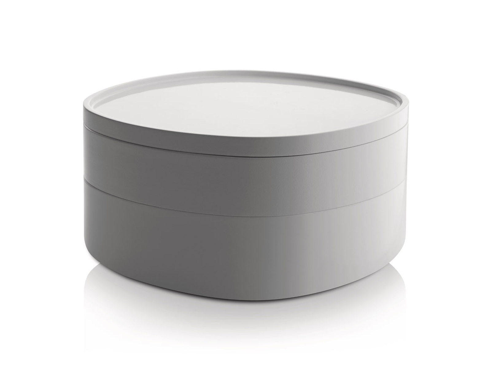 W tym wariancie pojemnik posiada ochronną pokrywkę oraz praktyczne przegródki. Dzięki nim można łatwiej i schludniej porządkować kosmetyki bez ryzyka zabrudzeń i chaosu.