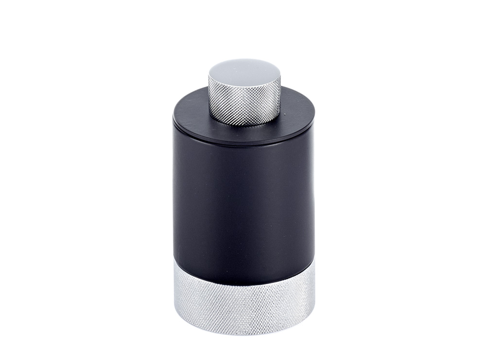 Elegancki okrągły zamykany pojemnik kosmetyczny wykonany z wysokiej jakości lakierowanego mosiądzu oraz elementami z chromowanego mosiądzu.