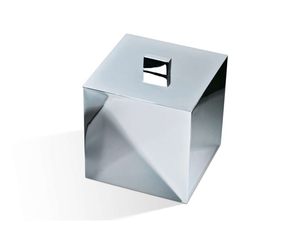Elegancki kwadratowy zamykany pojemnik kosmetyczny wykonany z wysokiej jakości chromowanego mosiądzu.