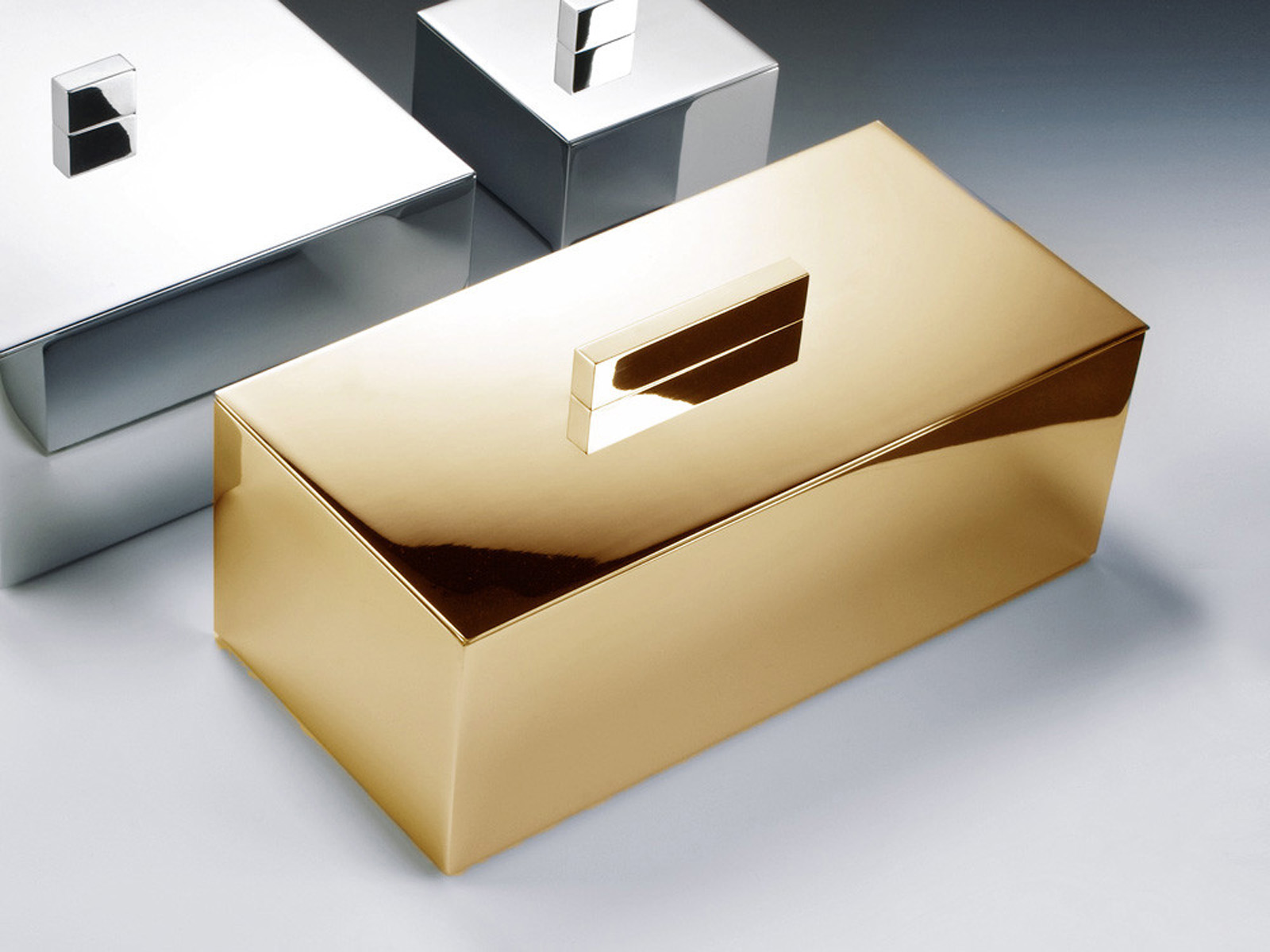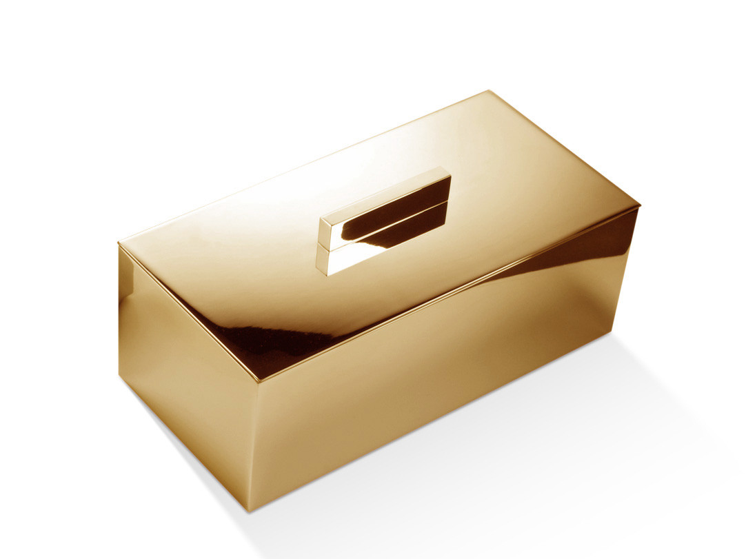 Elegancki duży prostokątny zamykany pojemnik kosmetyczny wykonany z wysokiej jakości pozłacanego 24-karatowym złotem mosiądzu.