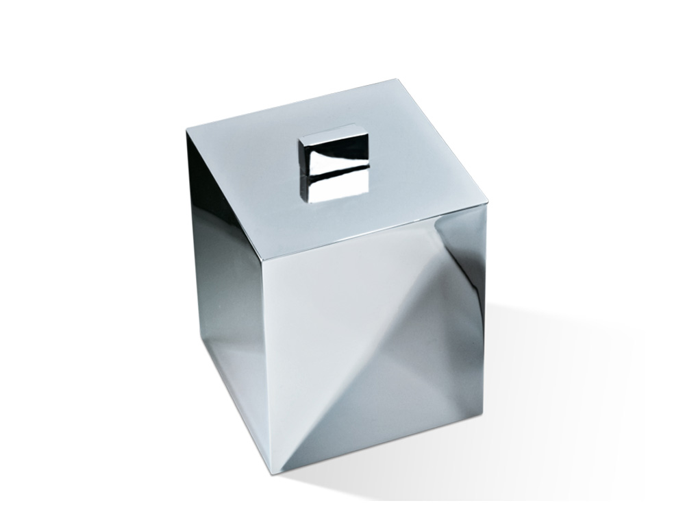 Elegancki kwadratowy zamykany pojemnik kosmetyczny wykonany z wysokiej jakości chromowanego mosiądzu.