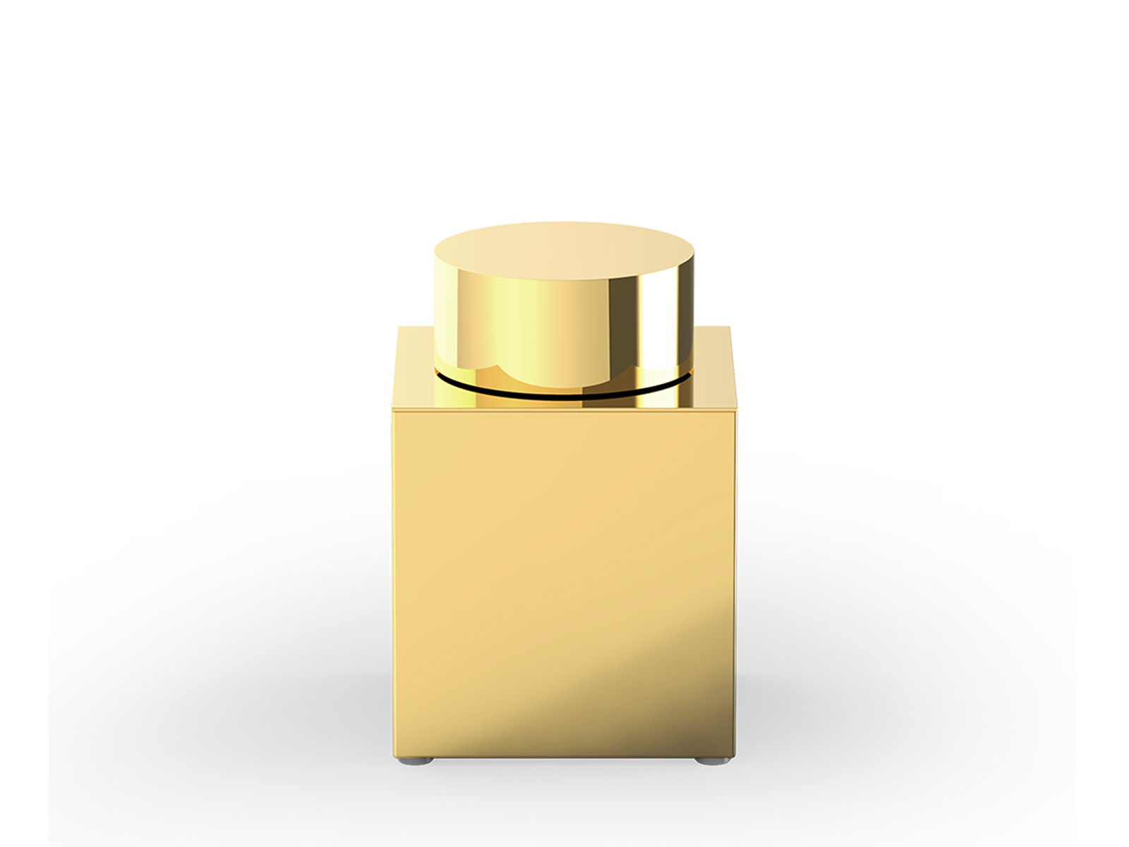 Elegancki kwadratowy zamykany niewielki pojemnik kosmetyczny wykonany z wysokiej jakości pozłacanego 24-karatowym złotem mosiądzu.