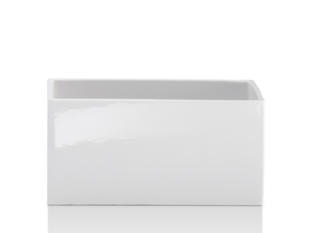 Elegancki ceramiczny prostokątny otwarty pojemnik kosmetyczny wykonany z gładkiej białej porcelany.