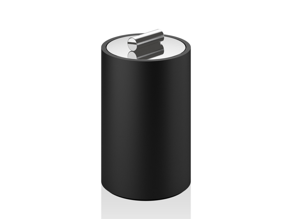 Elegancki okrągły zamykany pojemnik kosmetyczny wykonany z innowacyjnego, odpornego na uszkodzenia a zarazem przyjaznego dla środowiska kompozytu mineralnego.