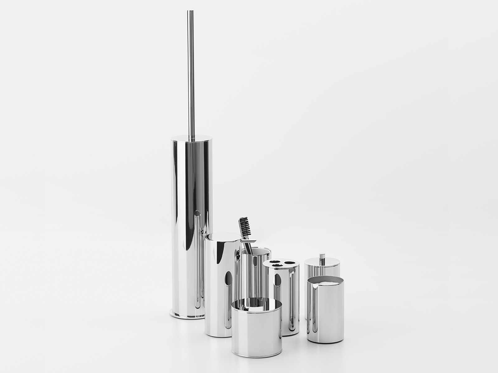 Uniwersalna forma pojemnika umożliwia dopasowanie go do akcesoriów łazienkowych z kolekcji Decor Walther: Bar i Round.