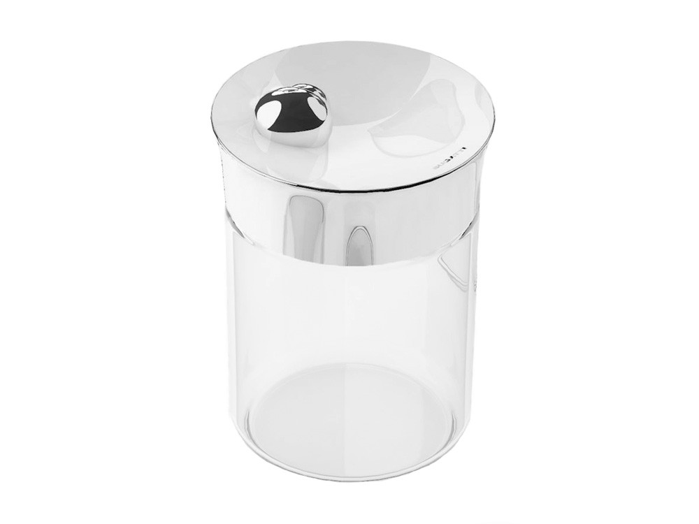 Pokrywka pojemnika hermetyczna, wykonana z wytrzymałego tworzywa ABS z niewielkim elementem dekoracyjnym ze stali nierdzewnej. Dodatkowym czynnikiem dekoracyjnym pokrywki jest kontrastujące zestawienie kolorów białej górnej powierzchni ze srebrnym dekorem i srebrnymi bokami pokrywki.
