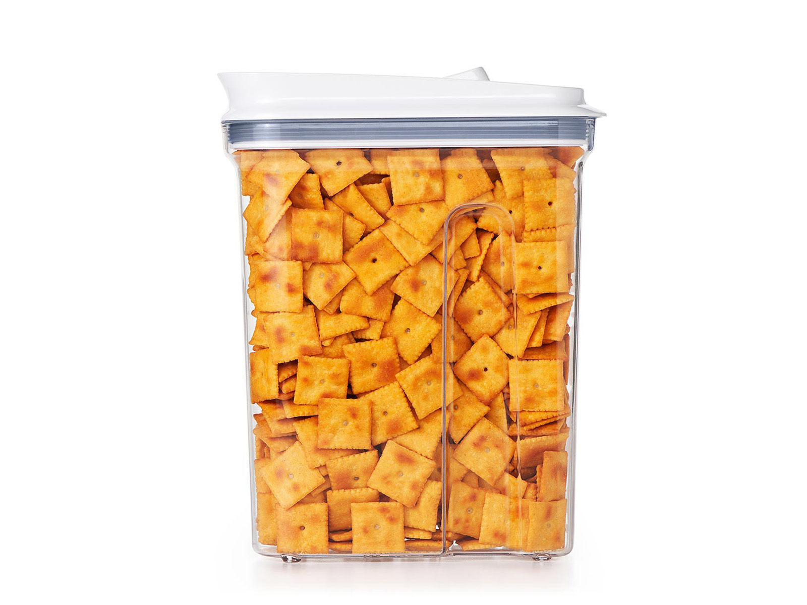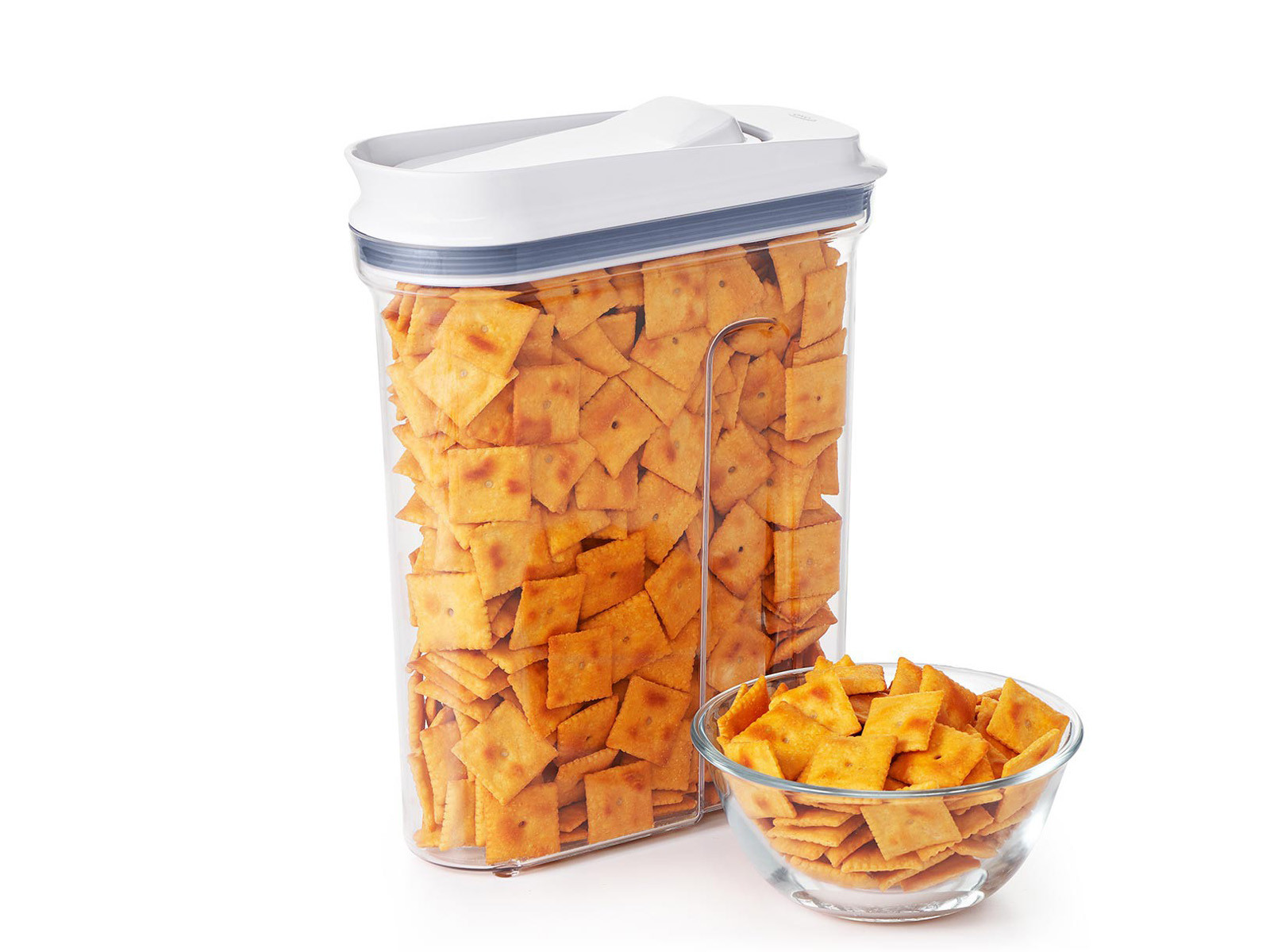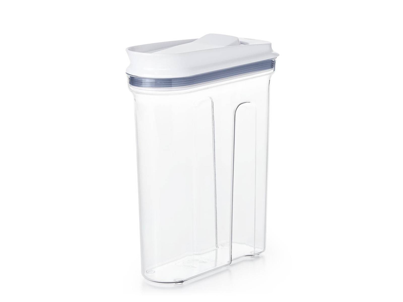 Praktyczny kuchenny hermetyczny pojemnik do przechowywania sypkich oraz suchych produktów żywnościowych takich jak np.: płatki śniadaniowe, różnego rodzaju ziarna, kasze, orzechy i wiele innych.