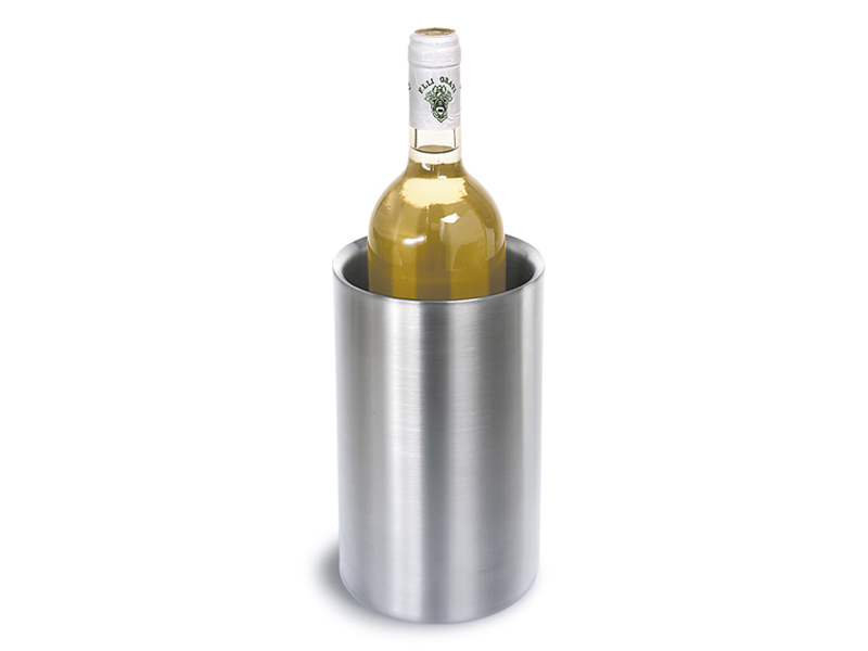 Pojemnik Easy to oryginalny i bardzo funkcjonalny kubełek z funkcją izolacji. Pojemnik wykonany jest ze szczotkowanej stali nierdzewnej oraz posiada podwójne dno, dzięki czemu lepiej izoluje zimną/zmrożoną butelkę od temperatury otoczenia. Świetna funkcjonalność oraz prosta elegancka forma z pewnością umili niejeden toast.