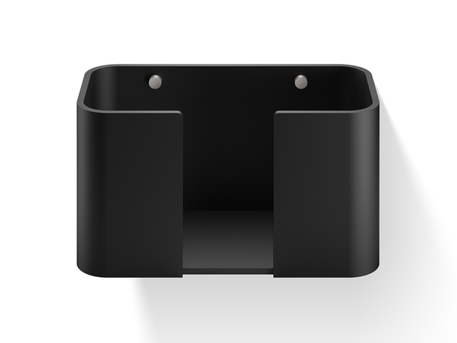 Pojemnik montowany do ściany za pomocą mocowań wykonanych ze stali nierdzewnej w wykończeniu matowym.