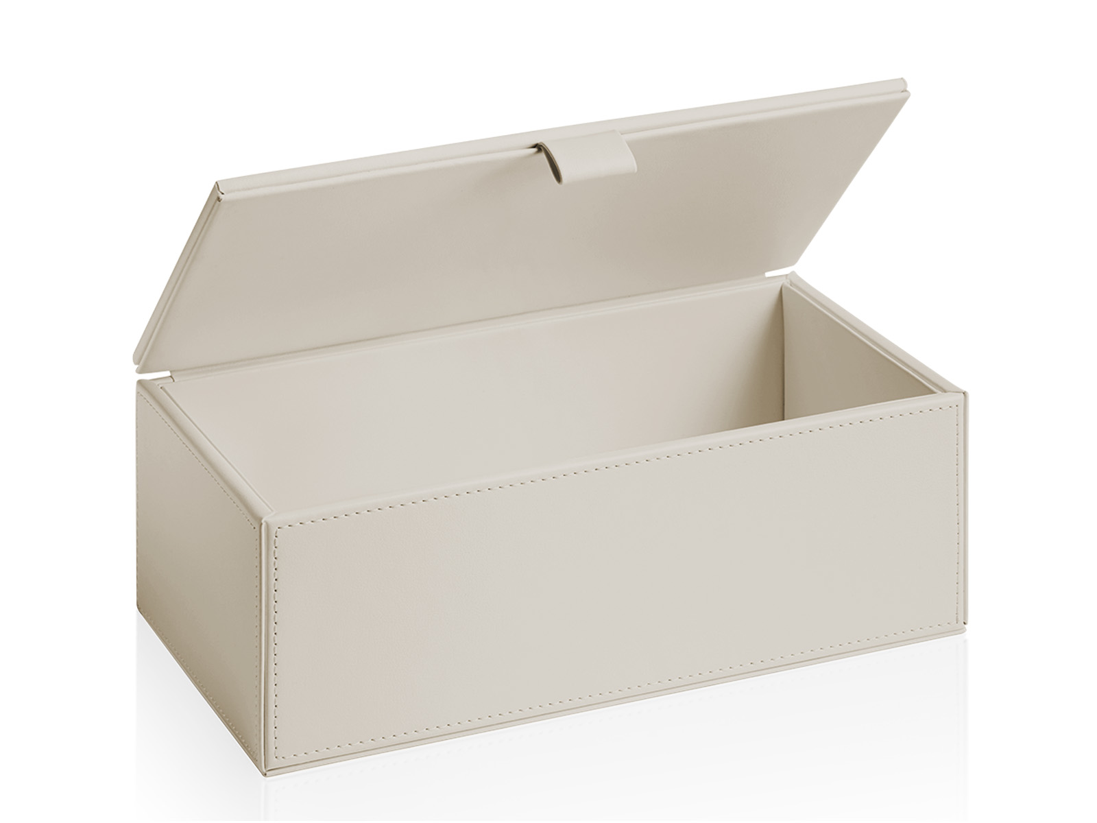 Pojemnik połączony z uchylnym wiekiem wykonany ze skóry syntetycznej - materiał skóropodobny jest bardzo estetyczny i świetnie imituje naturalną skórę, jest zmywalny i odporny na wilgoć.