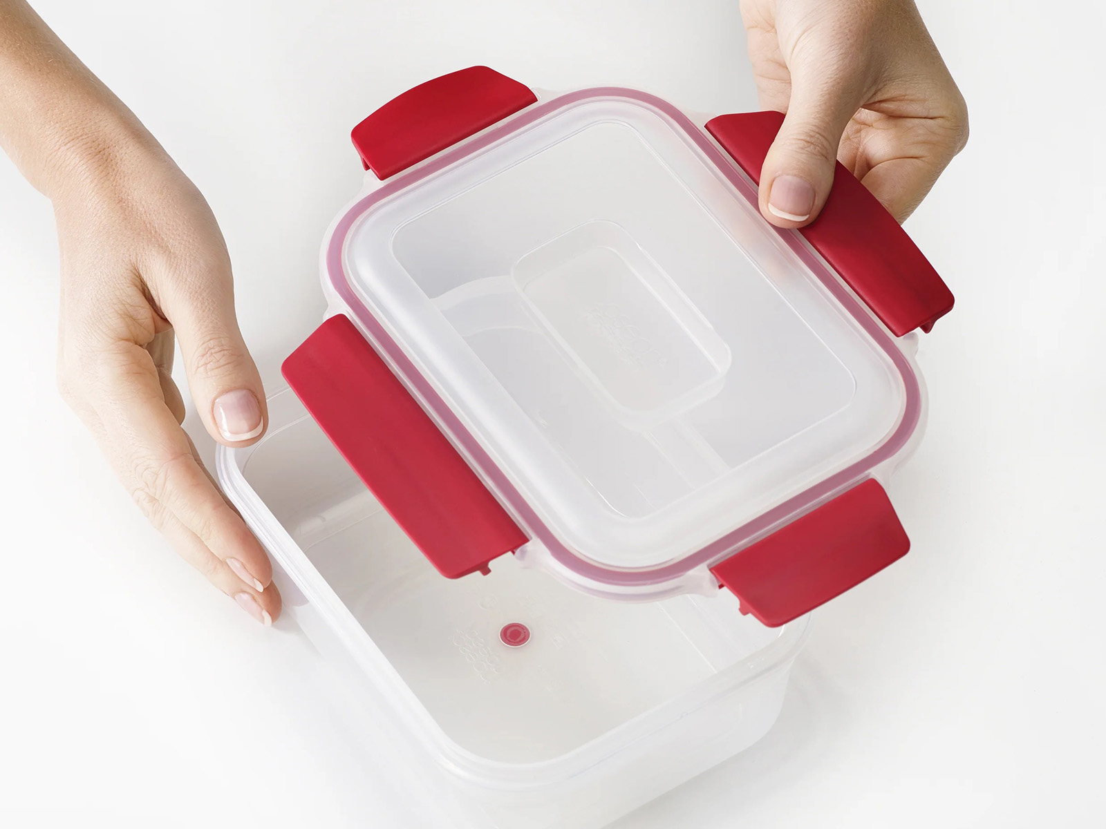 Szczelne hermetyczne pokrywki z zatrzaskowymi klipsami i silikonowymi uszczelkami zapewniają świeżość oraz bezpieczeństwo przechowywanej żywności i płynów.