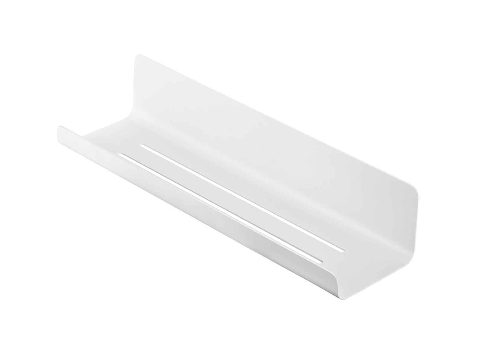 Półka prysznicowa stwarza idealną przestrzeń na akcesoria kąpielowe oraz kosmetyki do ciała. Dzięki dwóm długim szczelinom na dnie półki woda łatwo odpływa do brodzika.