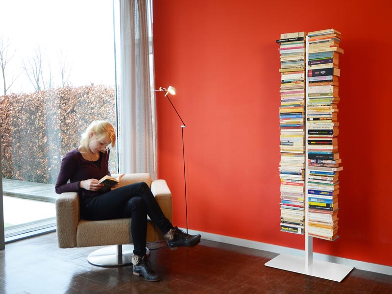 Booksbaum Floor 2XL to duża podwójna stojąca półka na książki. Minimalistyczny design oraz prostota konstrukcji to jej główne zalety obok niesłychanej funcjonalności i pojemności - półka ta posiada 16 pojedynczych półek i w zależności od grubości książek może pomieścić ponad 200 książek.