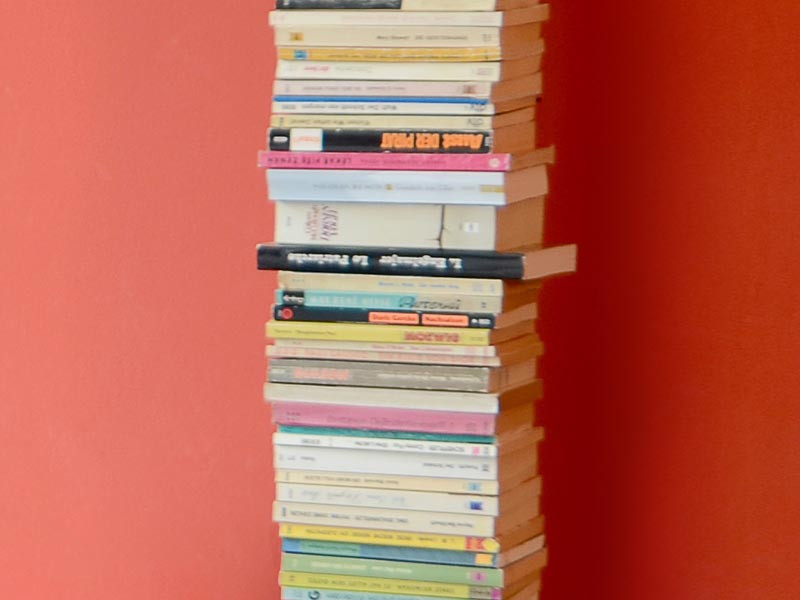 Niepowtarzalna konstrukcja sprawia wrażenie i złudzenie optyczne, jakby książki lewitowały w powietrzu.