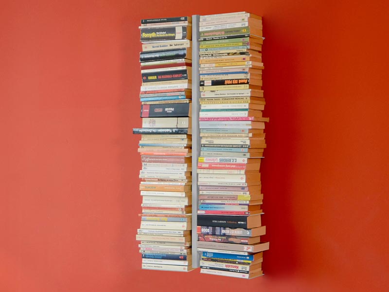 Booksbaum Wall 2M to mała podwójna wisząca półka na książki. Minimalistyczny design oraz prostota konstrukcji to jej główne zalety obok niesłychanej funcjonalności i pojemności - półka ta posiada 10 pojedynczych półek i w zależności od grubości książek może pomieścić ponad 100 książek.