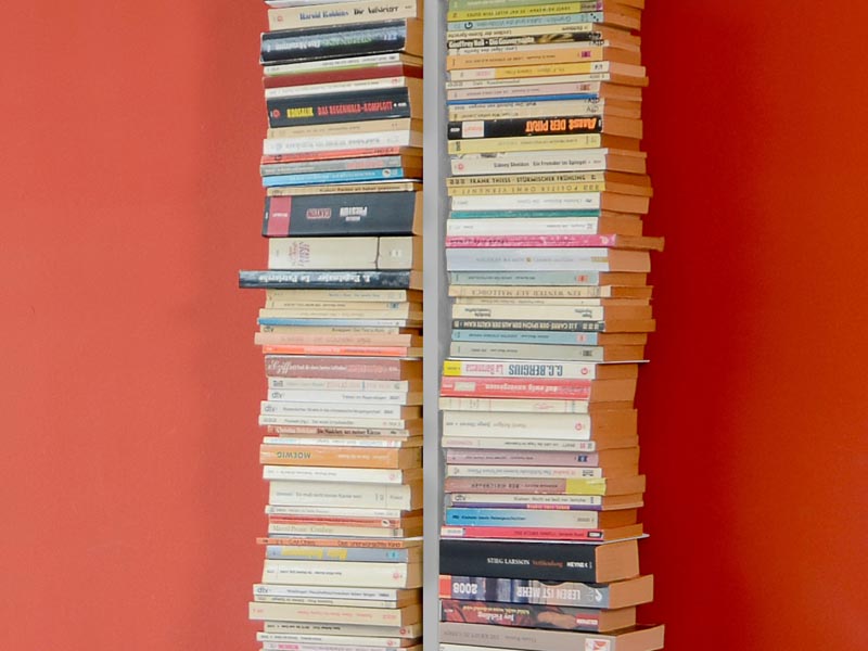 Niepowtarzalna konstrukcja sprawia wrażenie i złudzenie optyczne, jakby książki lewitowały w powietrzu.