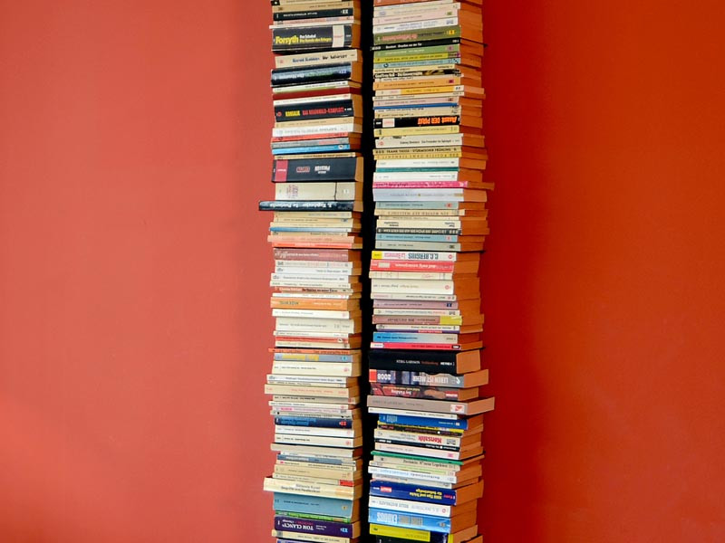 Niepowtarzalna konstrukcja sprawia wrażenie i złudzenie optyczne, jakby książki lewitowały w powietrzu.