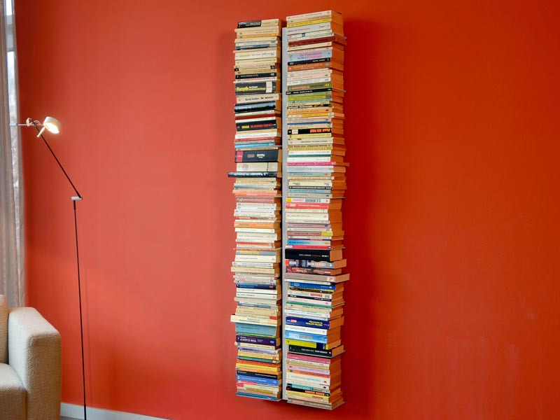 Booksbaum Wall 2XL to duża podwójna wisząca półka na książki. Minimalistyczny design oraz prostota konstrukcji to jej główne zalety obok niesłychanej funcjonalności i pojemności - półka ta posiada 16 pojedynczych półek i w zależności od grubości książek może pomieścić ponad 200 książek.
